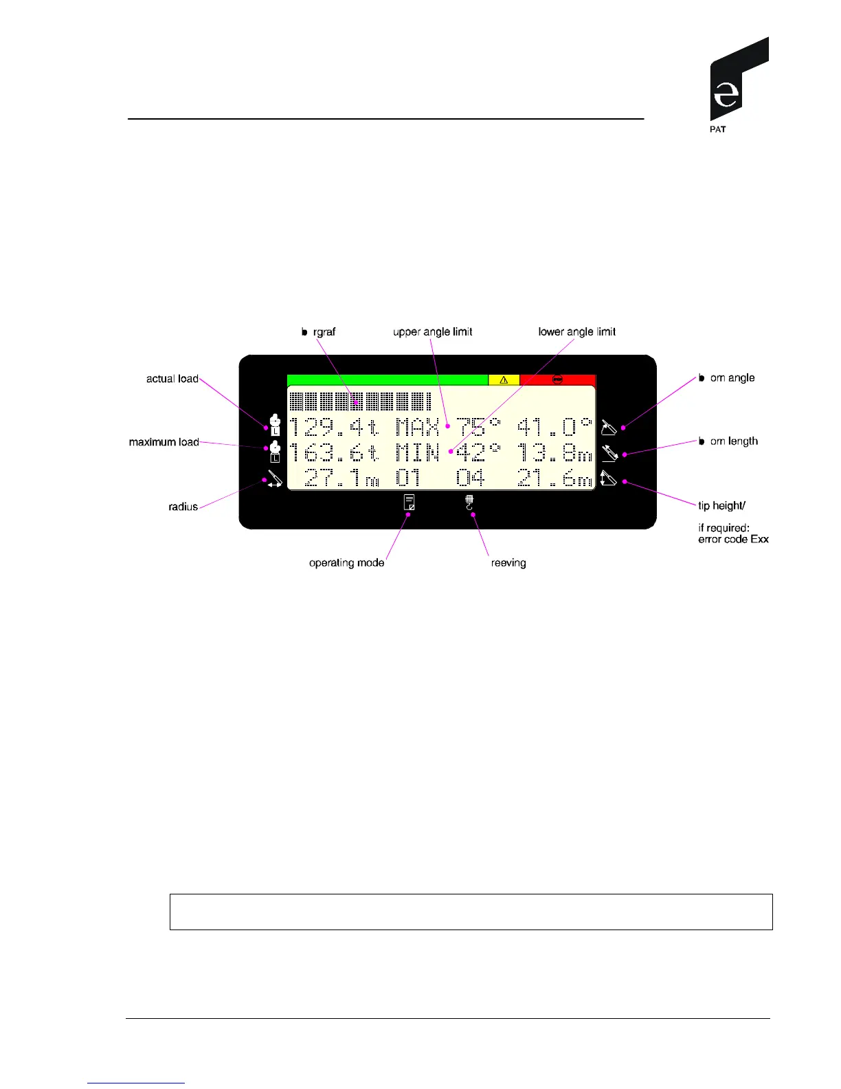 actual and maximum load. The load moment will also be indicated at the display in form of a bar-