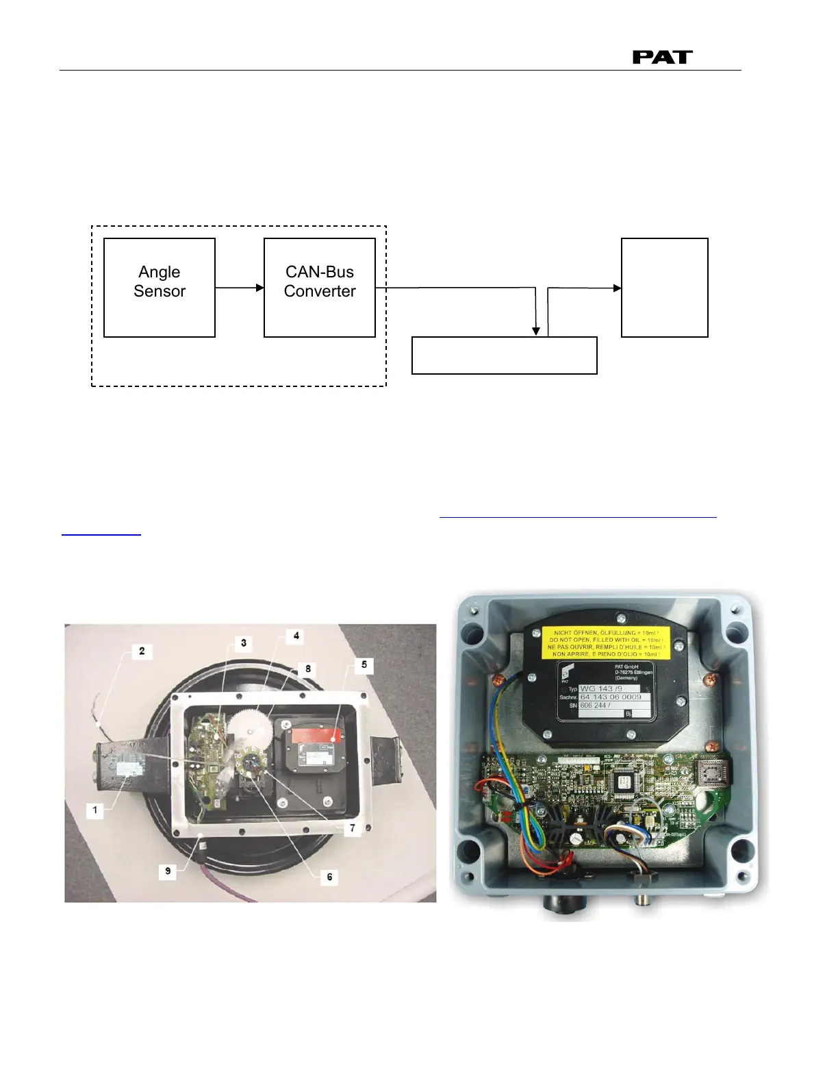 The signal runs from the angle sensor to the Can-Bus converter board, both located in the angle