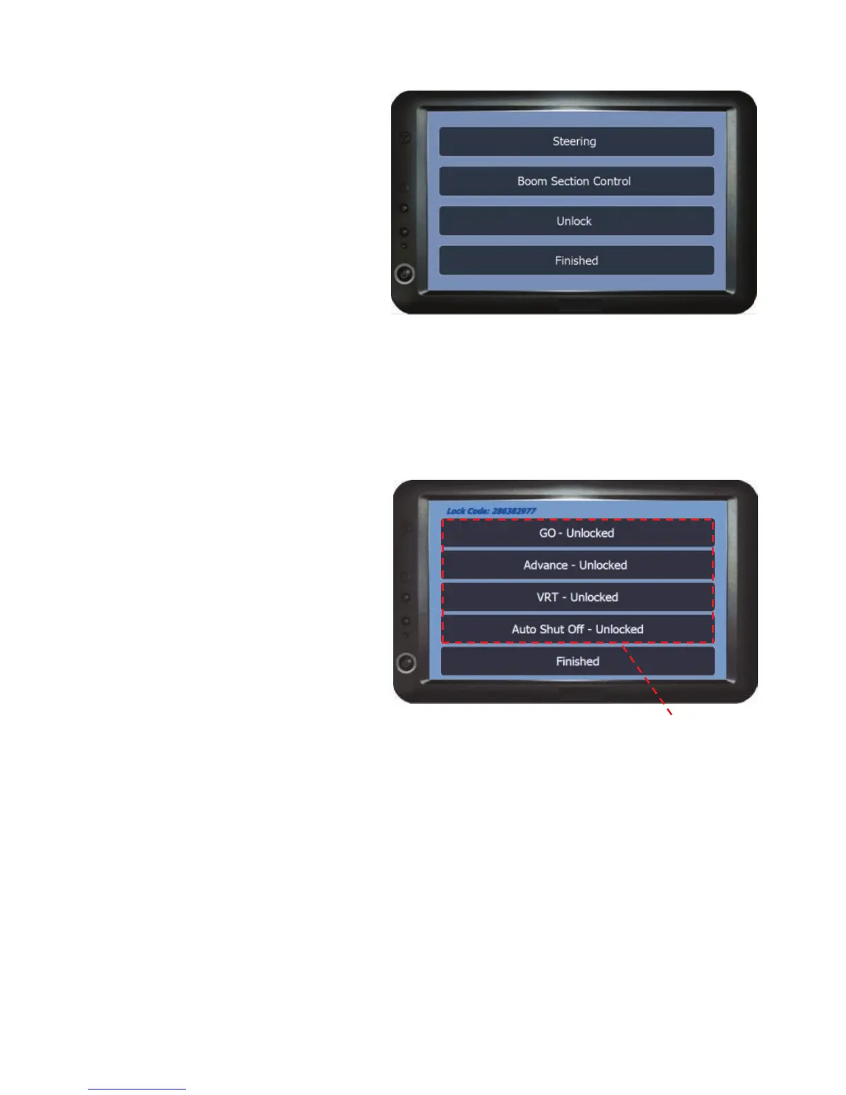 Unlock - This area is used to upgrade the various product software options of