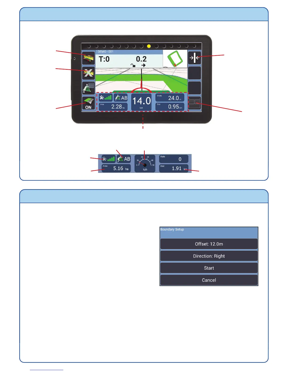 3) Press Start and drive around the field edge until the start point is reached. The
