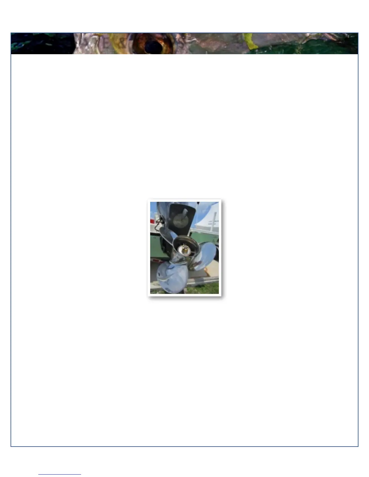 types of debris, cracked blades or fluid leaking out of the seal. Look for fishing line tangled around the prop or lower unit