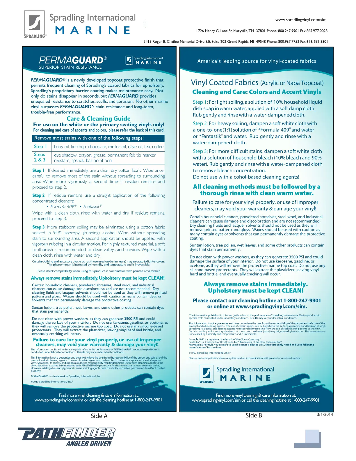 PATHFINDER 2200TRS - Upholstery Care & Cleaning Guide