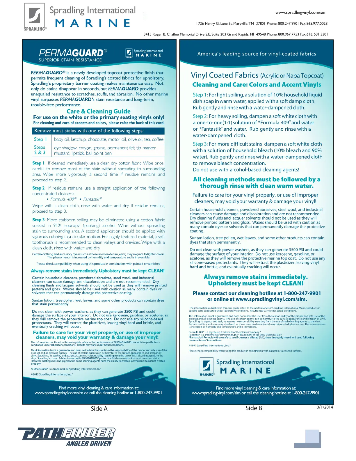 PATHFINDER 2300 HPS - Upholstery Care & Cleaning Guide