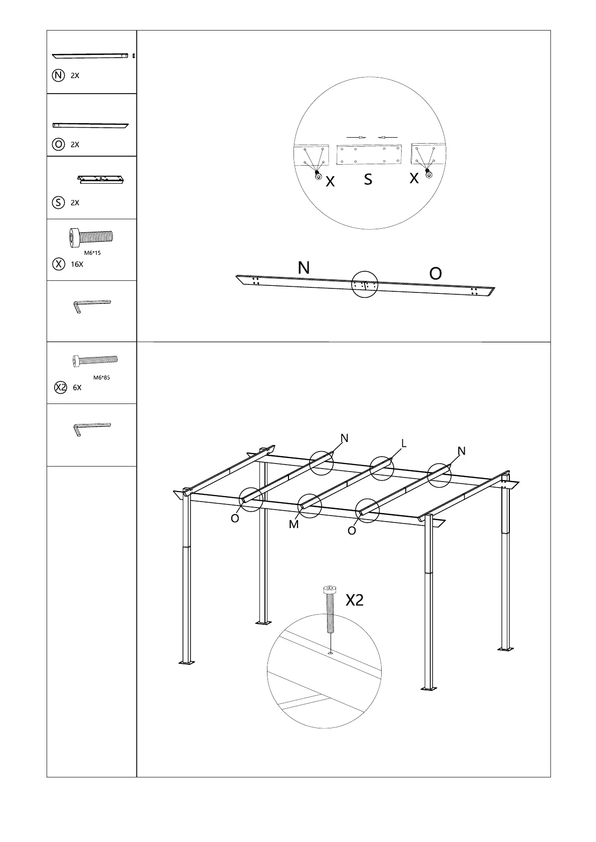 Connect N and O to build the cross beam (N&O) using bolts X