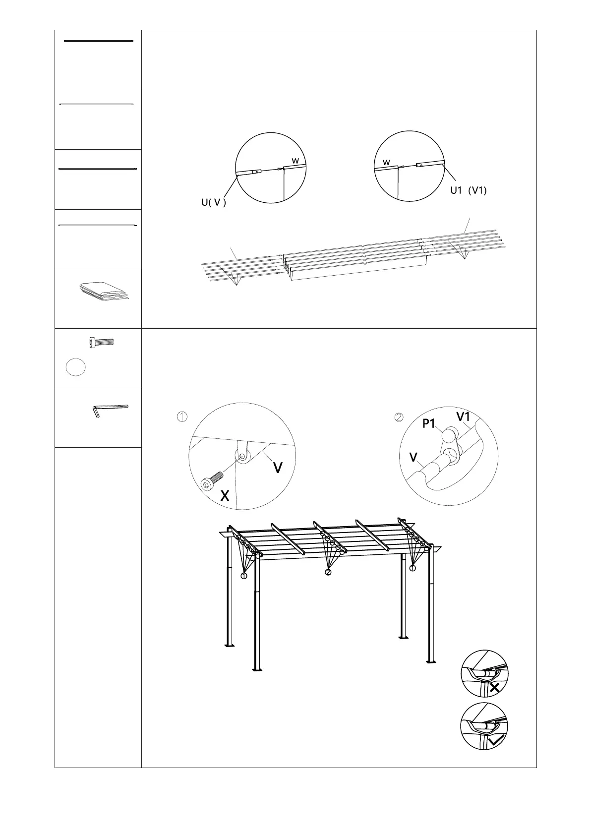 Step 9: Insert U, U1, V, V1 into the canopy from its side.