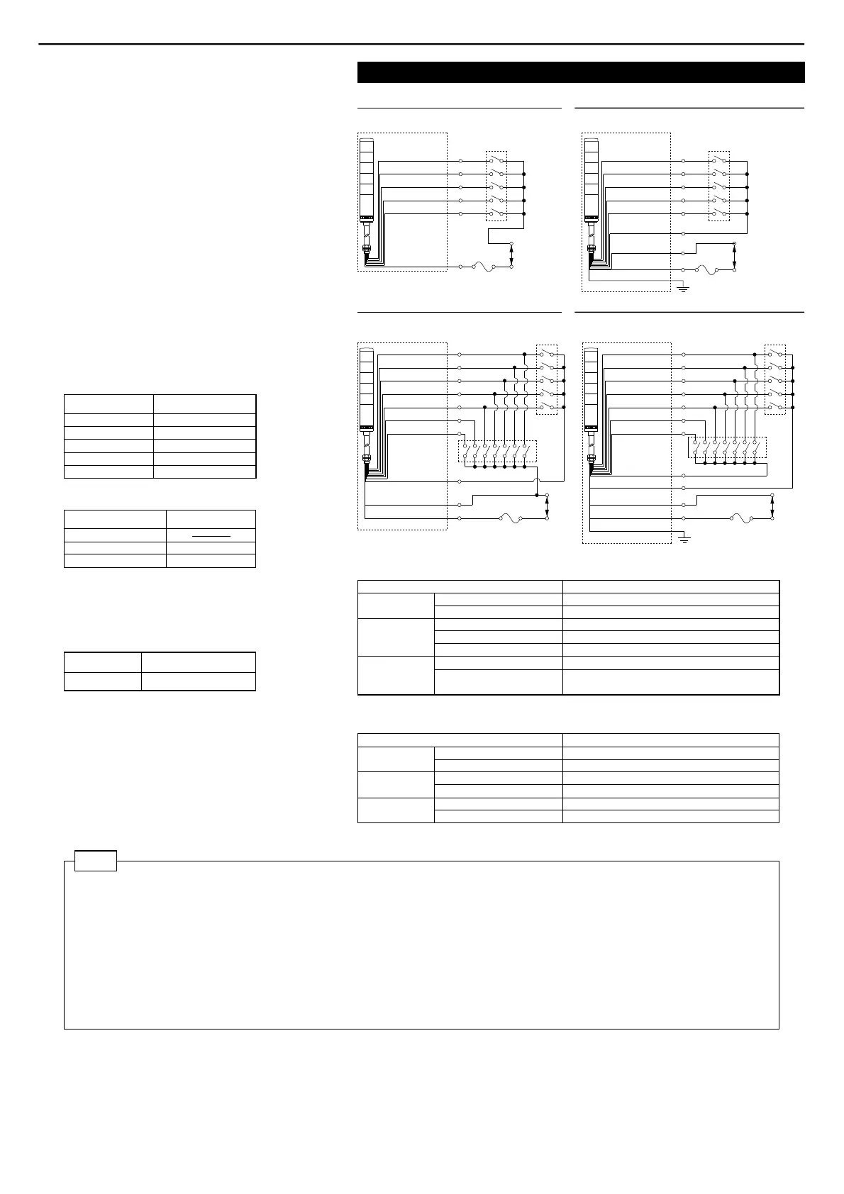 ● 1つの段(色)で、点灯用と点滅用の外部接点を同時にONさせると、他の段(色)が点灯状態となることがありますので