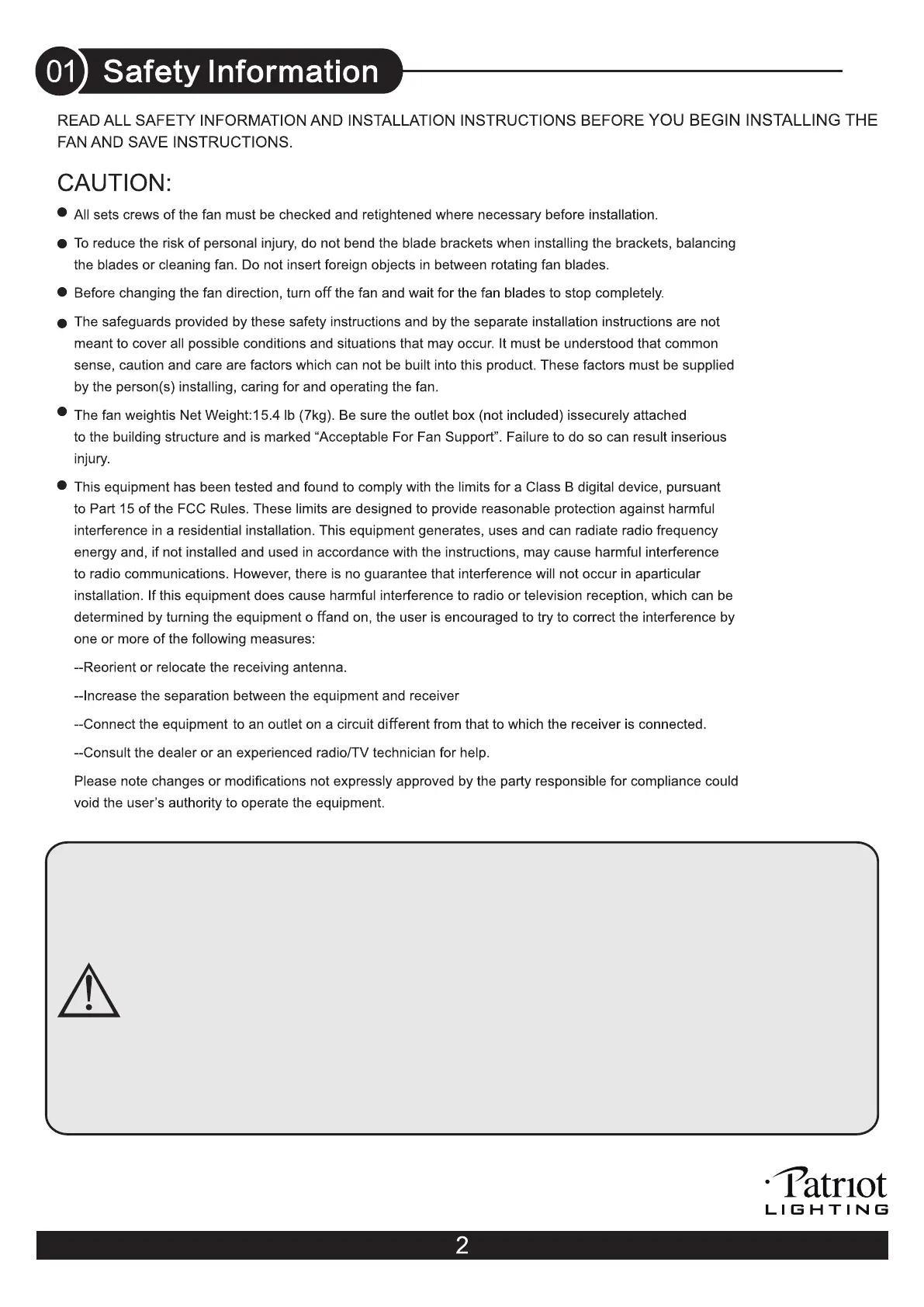 WARNING: To reduce the risk of electrical shock or fire , do not use this fan with any solid-state fan speed control