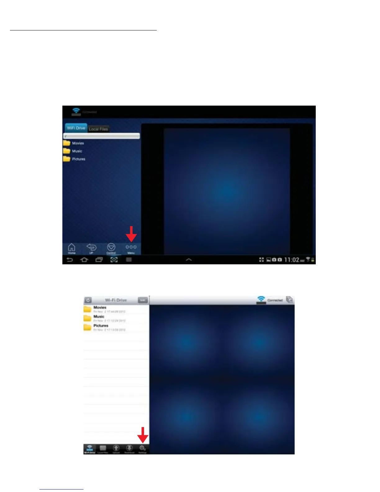 and other general settings to manage the drive. Android app settings are in “Menu”. How to use