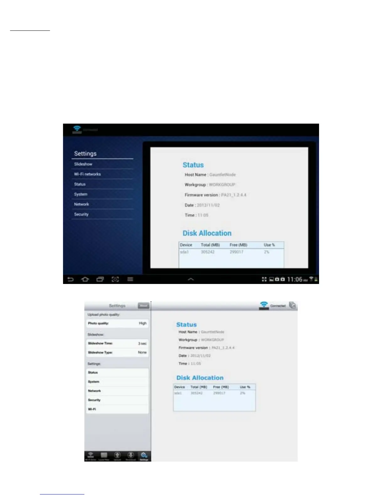Patriot Gauntlet Node - Settings - Status; Viewing Status Information; Disk Allocation Details
