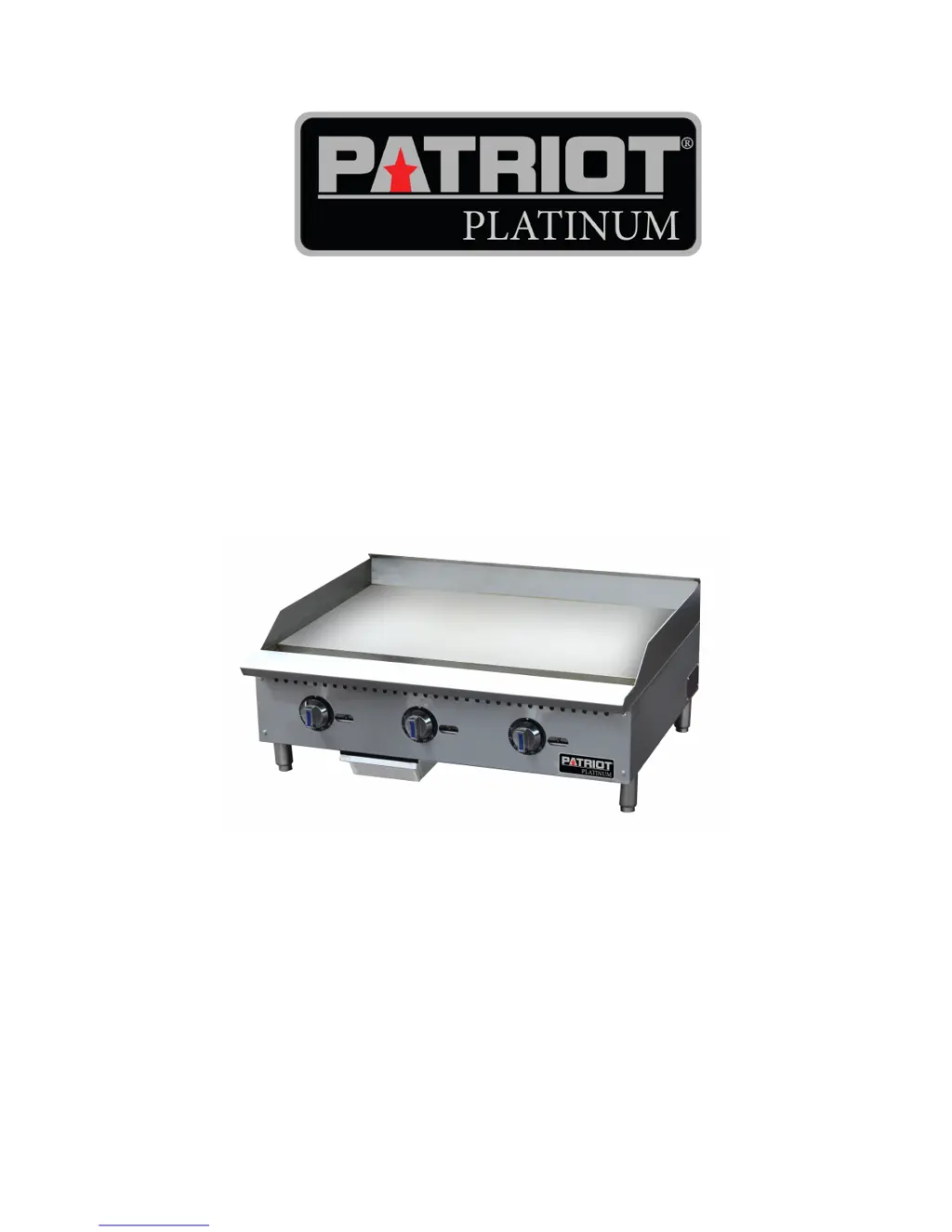 If you notice a strong smell of gas around your Patriot Griddle, immediately turn off the main gas valve. Do not light any flames, ignite anything, or turn on any electrical switches. Also, check if any pilots are out or if a burner knob is turned on. If so, turn off all burner valves and the main gas valve, and allow the excess gas to dissipate before attempting to relight the pilots.