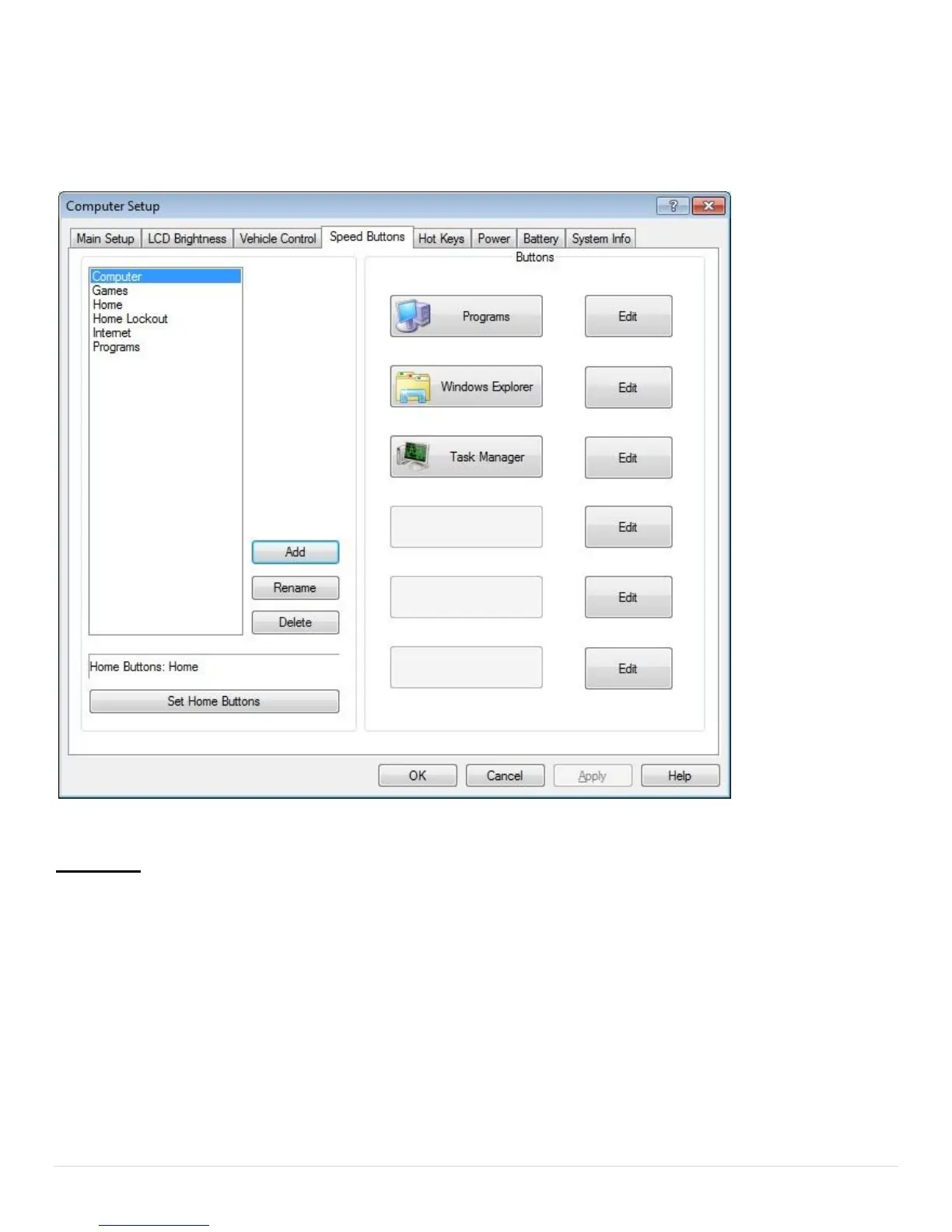 Speed Buttons Tab