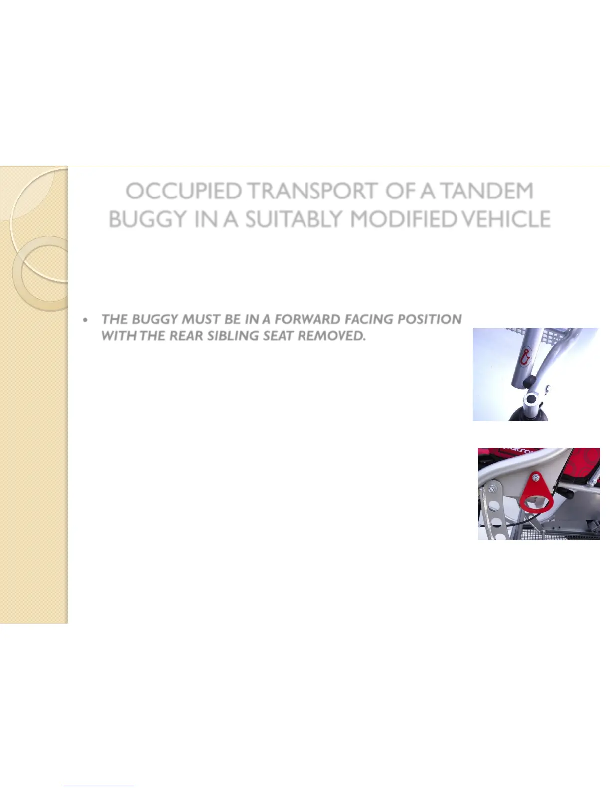 The TANDEM BUGGY must be secured to the vehicle floor using a 4-point