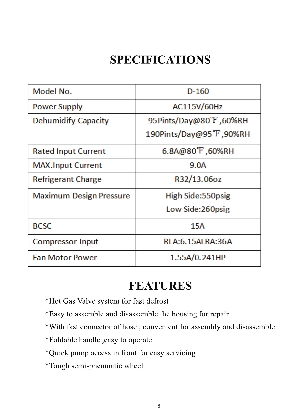 Patron D-160 - Specifications