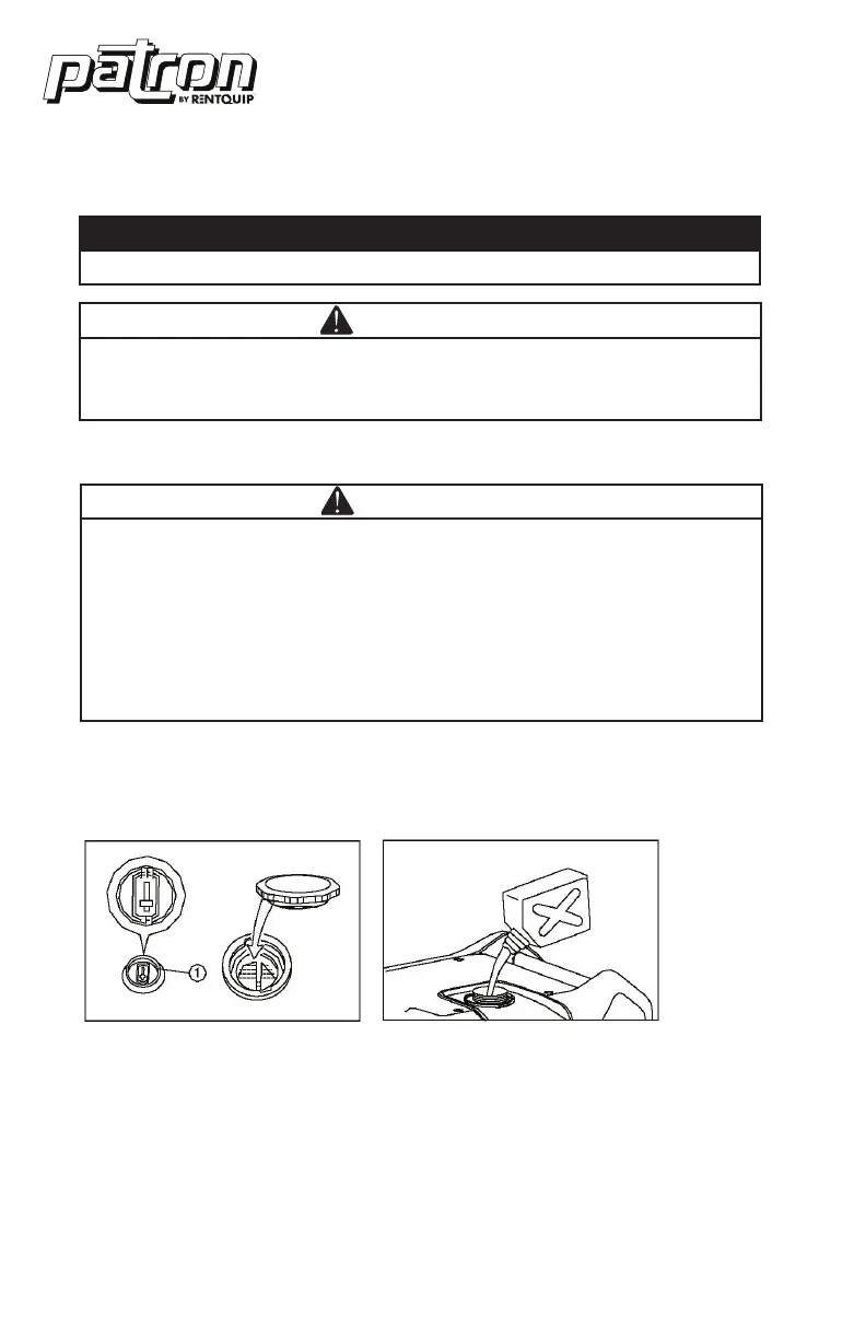 • Do not overfill the fuel tank, otherwise it may overflow when the fuel