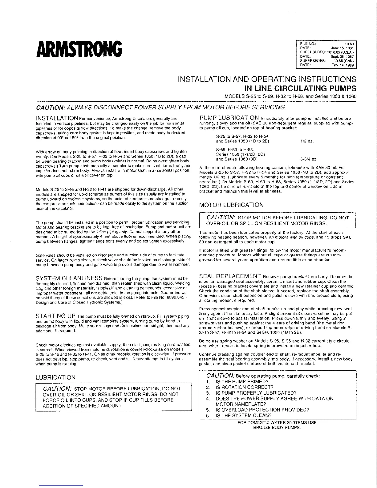 Patterson-Kelley P-K Compact - System Cleanliness; Starting up; Lubrication; Motor Lubrication