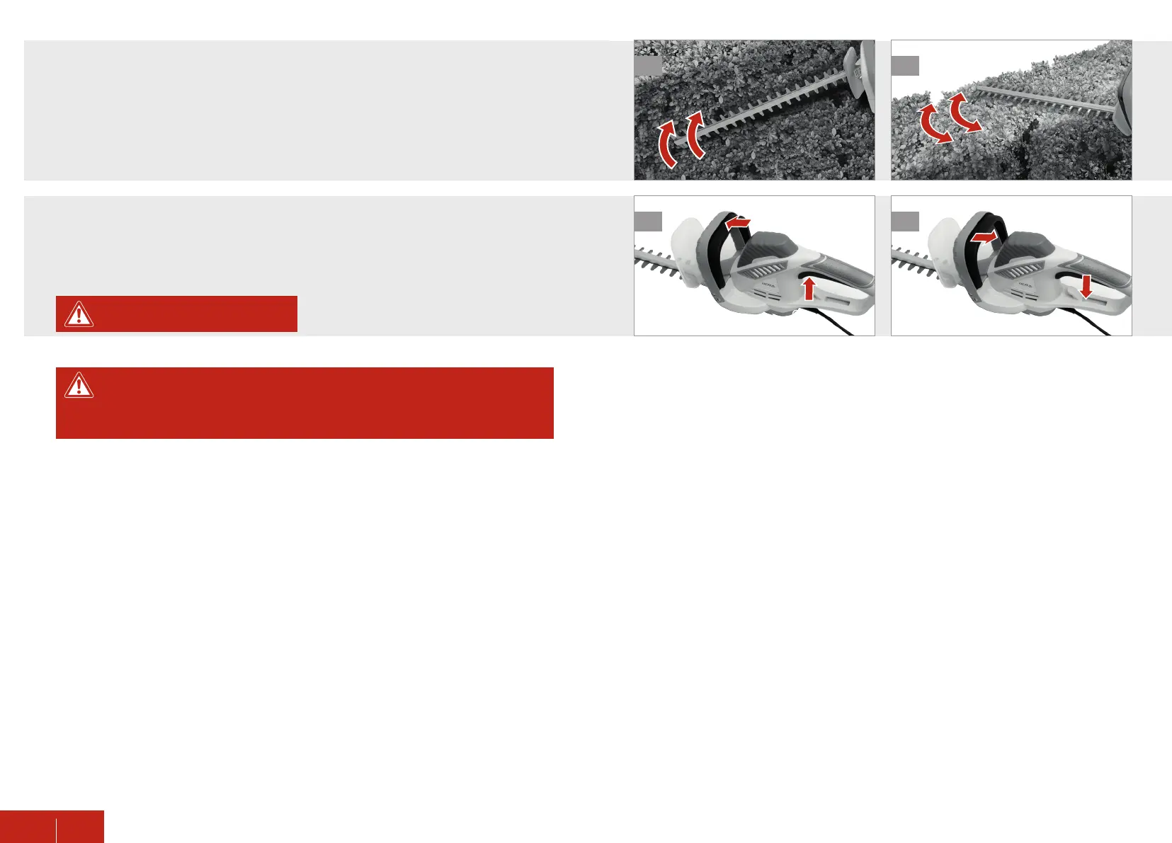 Warnung! Halten Sie die Heckenschere mit beiden Händen fest. Achten Sie darauf,