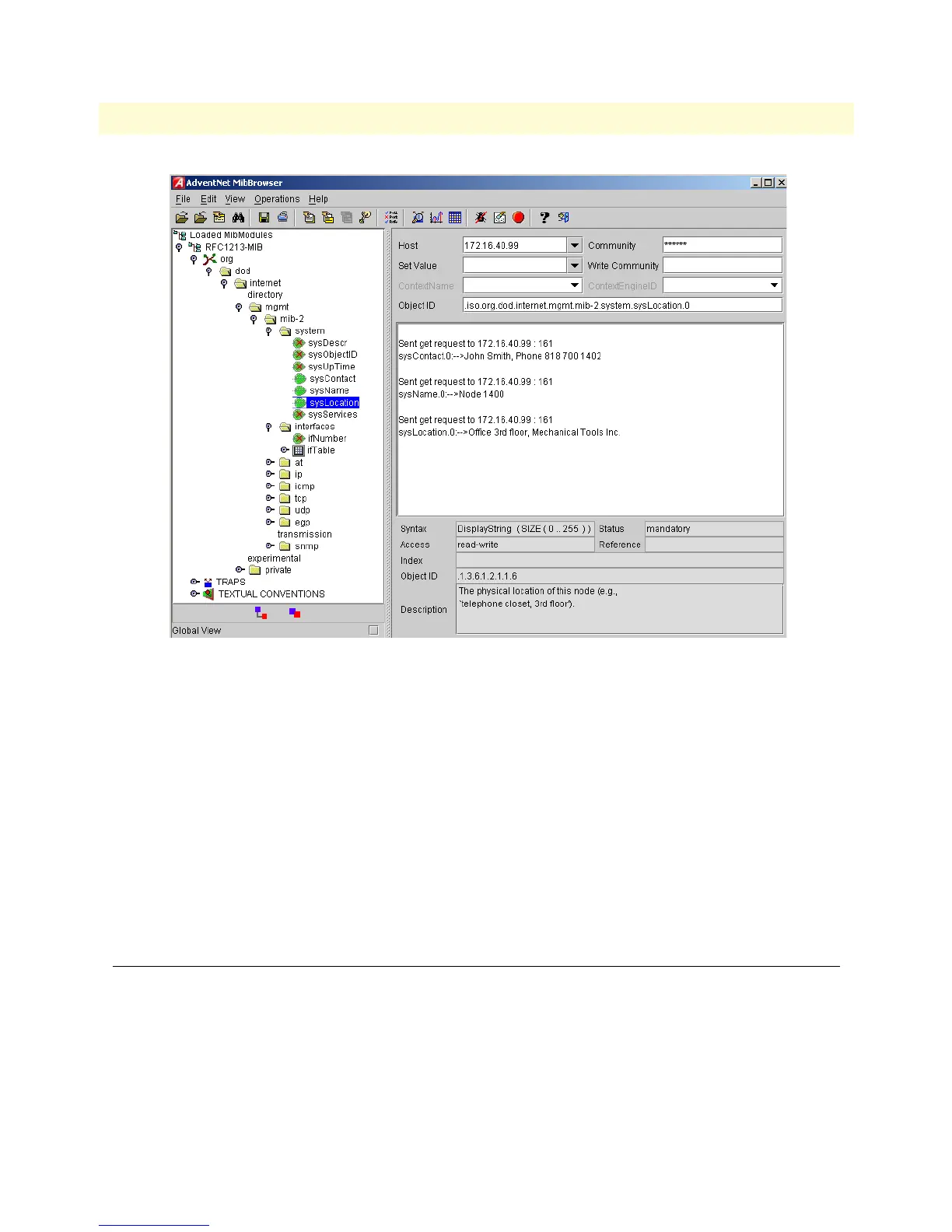 Figure 40. AdventNet MibBrowser displaying some of the System Group objects