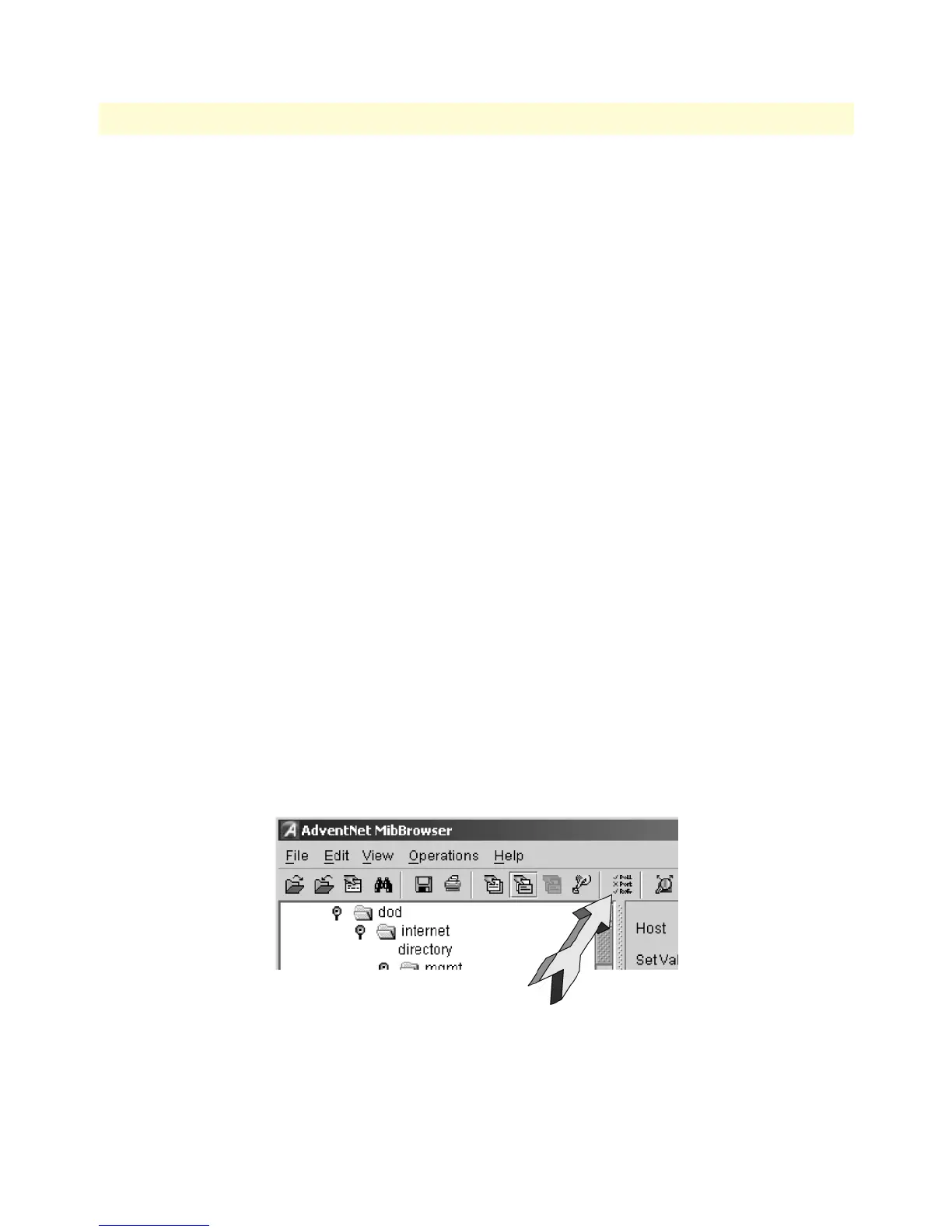 The operations that can be performed by the MibBrowser are available in a series of buttons in the toolbar on