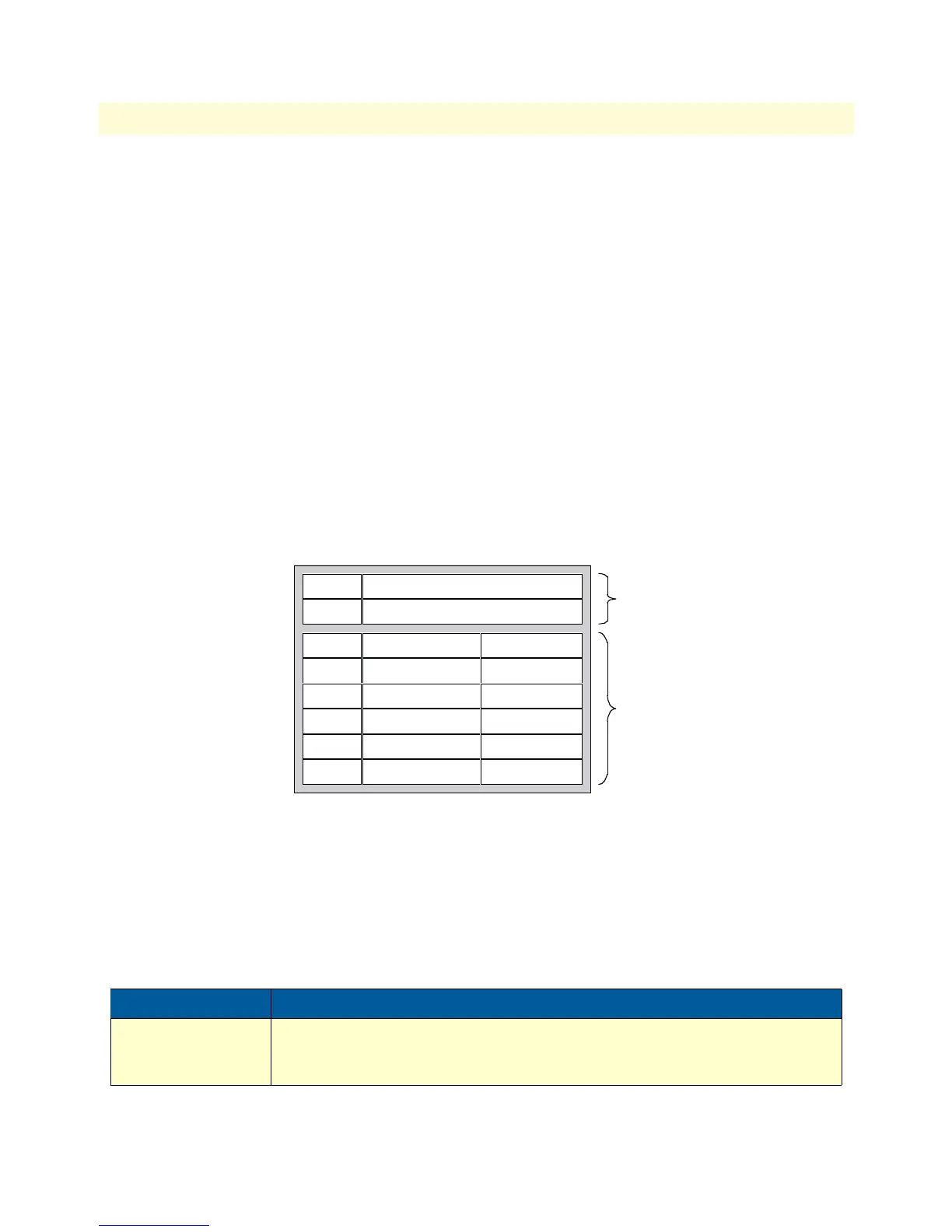 Each table contains a header and one or more entries. The header declares the type of the routing table as well