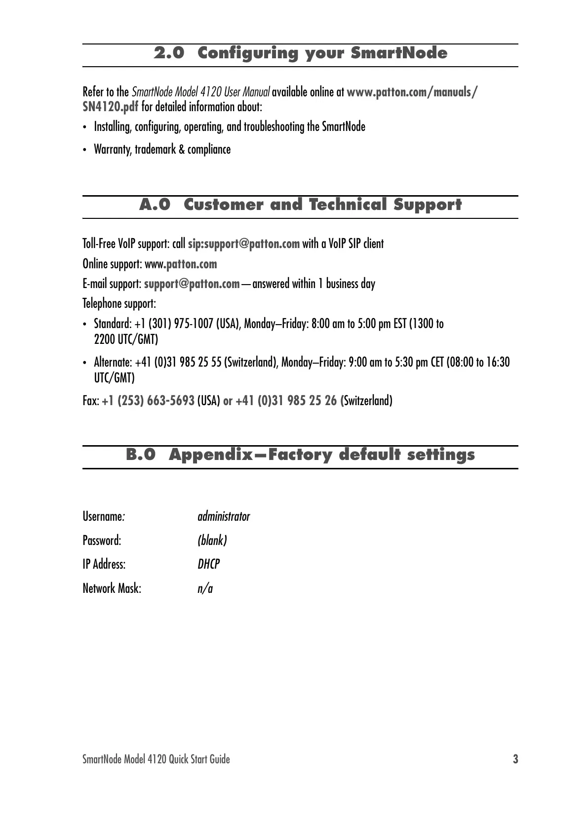 Refer to the SmartNode Model 4120 User Manual available online at www.patton.com/manuals/