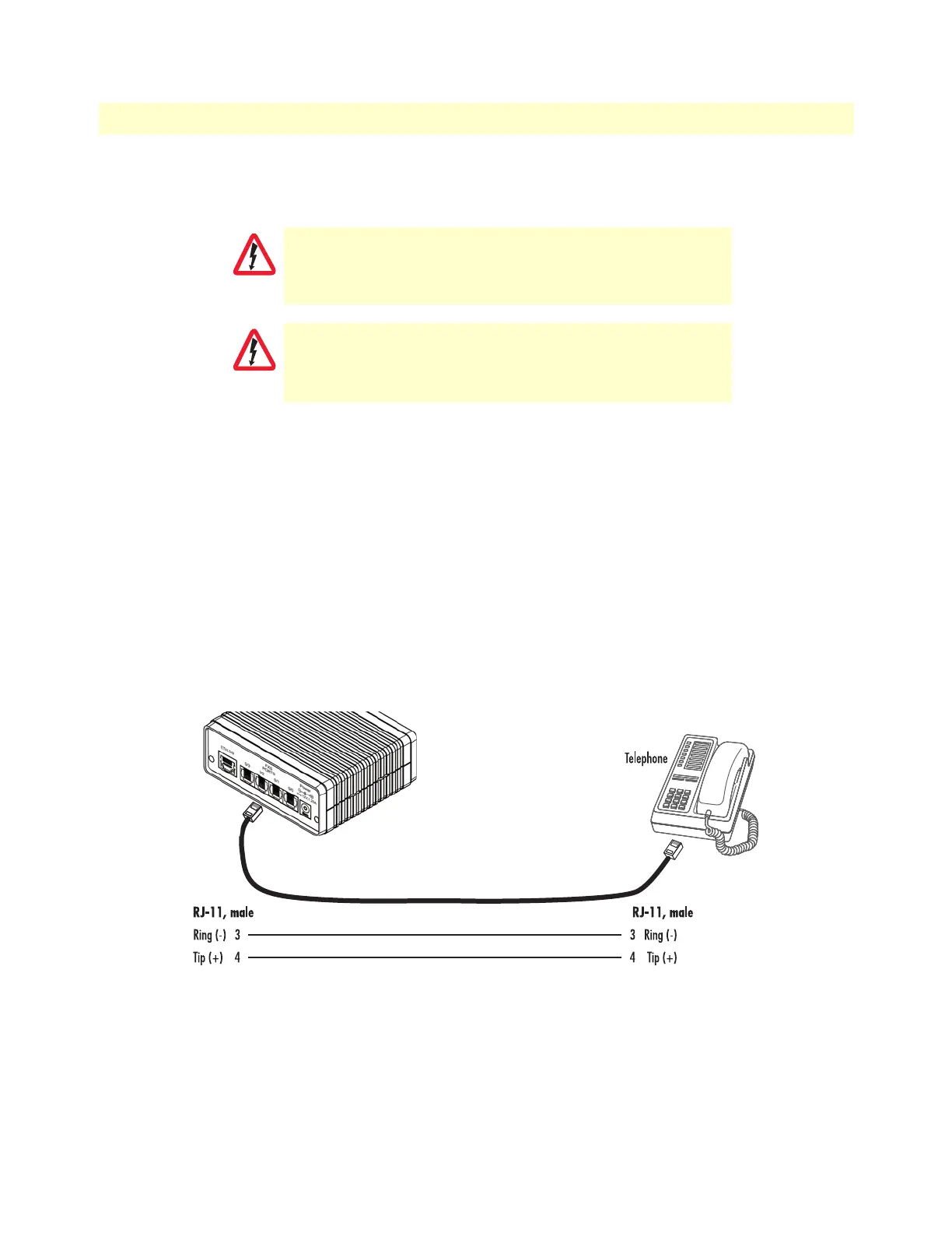The FXS interfaces are connected to analog devices via cables (see figure 7) terminated with RJ-11 connectors
