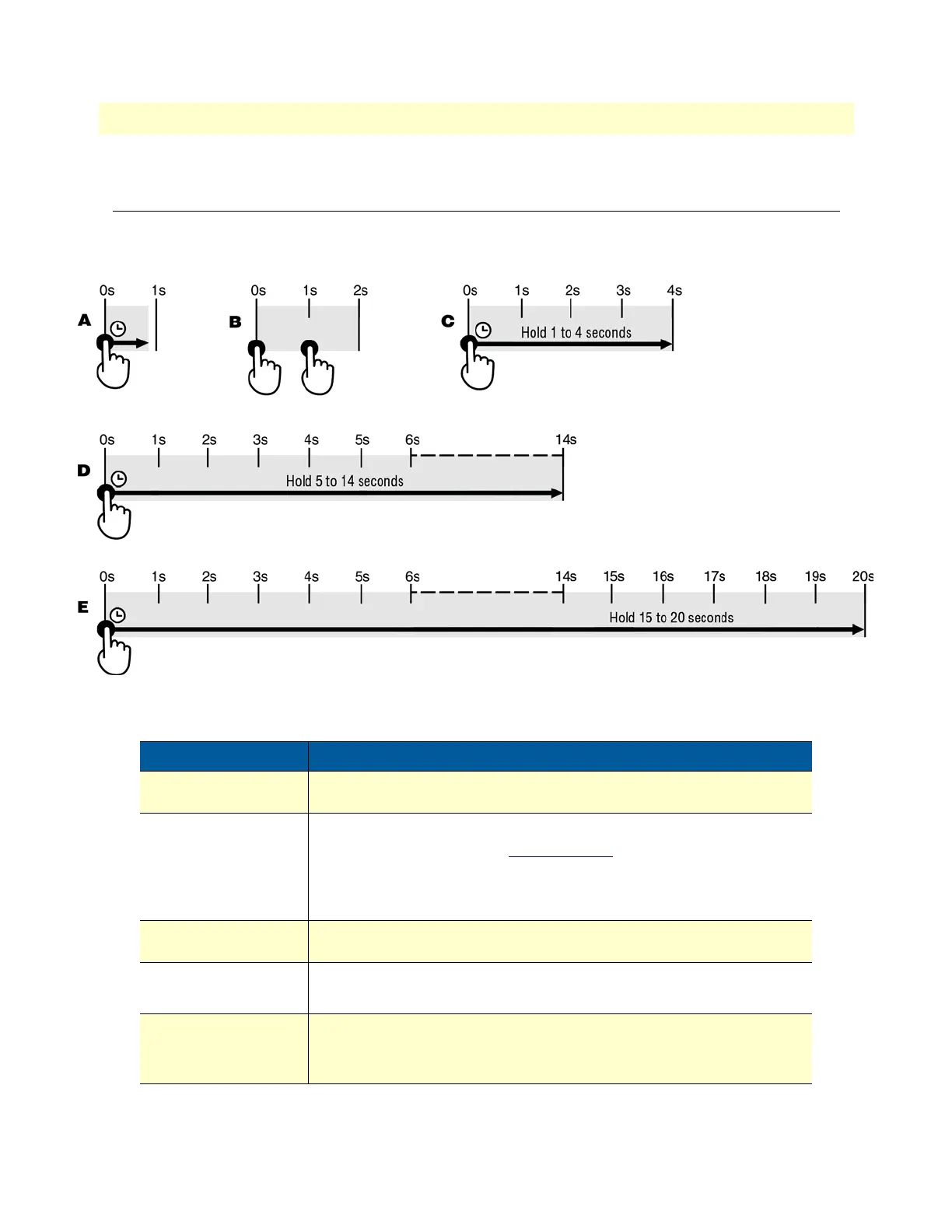 The Reset button has the following behaviors depending on how many seconds (see figure 17) the button is