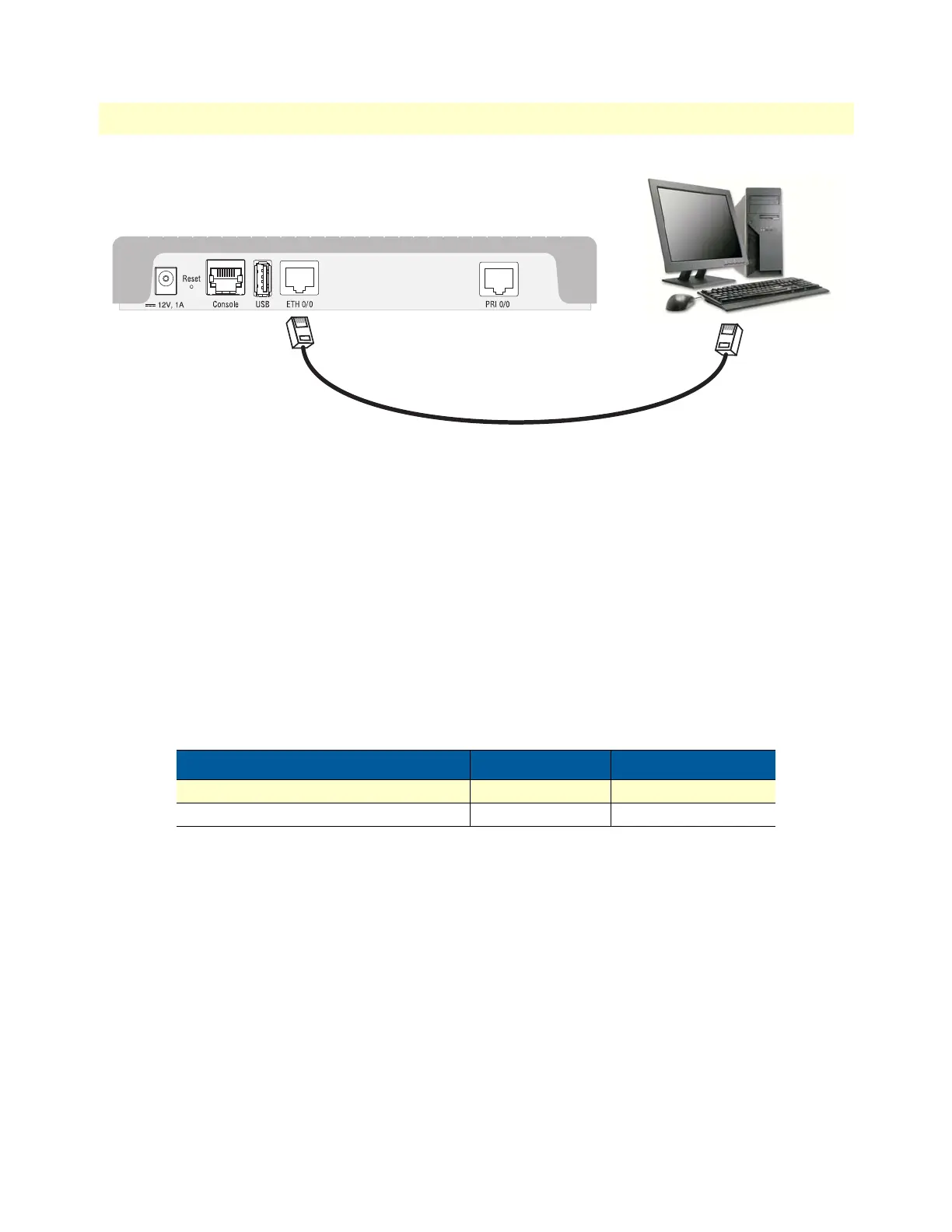 The factory default configuration for the Ethernet interface IP addresses and network masks are listed in Ta bl e 5.
