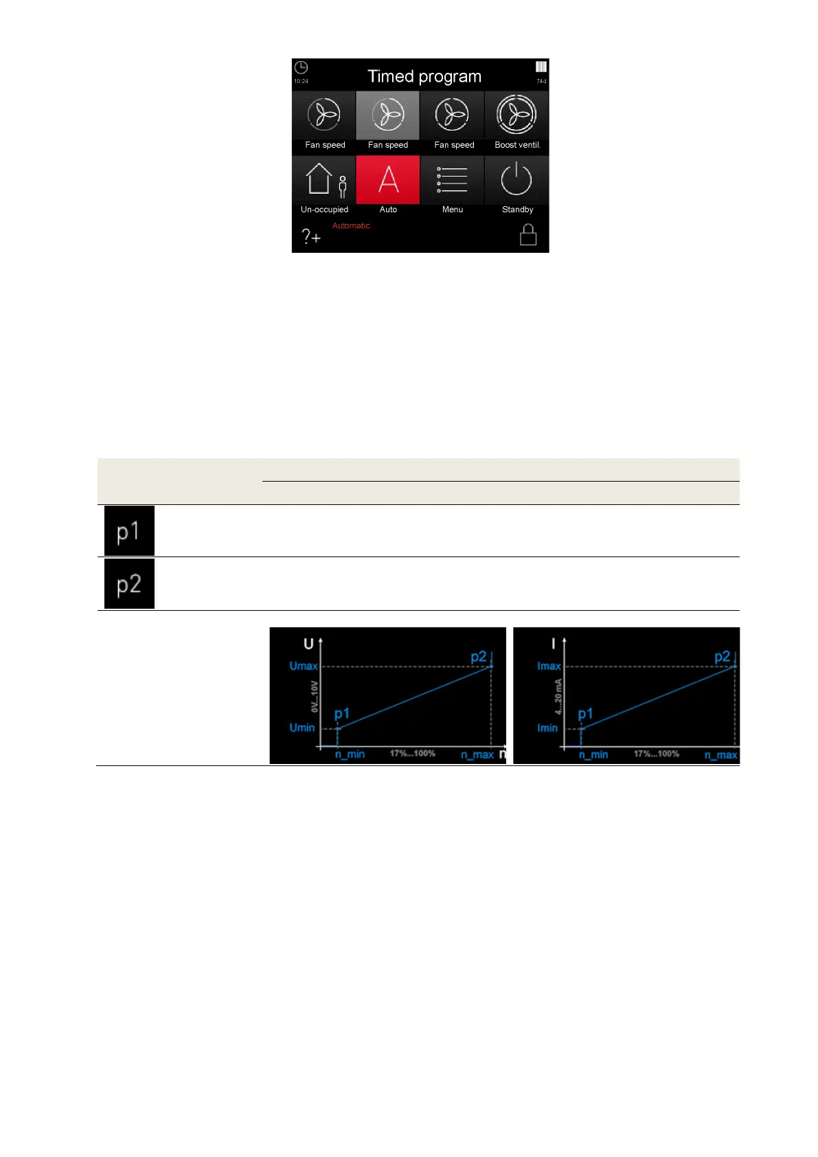 or moisture sensor to the control of the ventilation unit. The analogue signal of the sensor is interpreted as a control