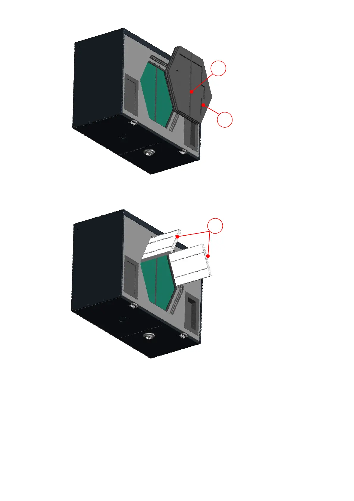 5. Holding them by the strap, pull the filters E out of the filter compartments.