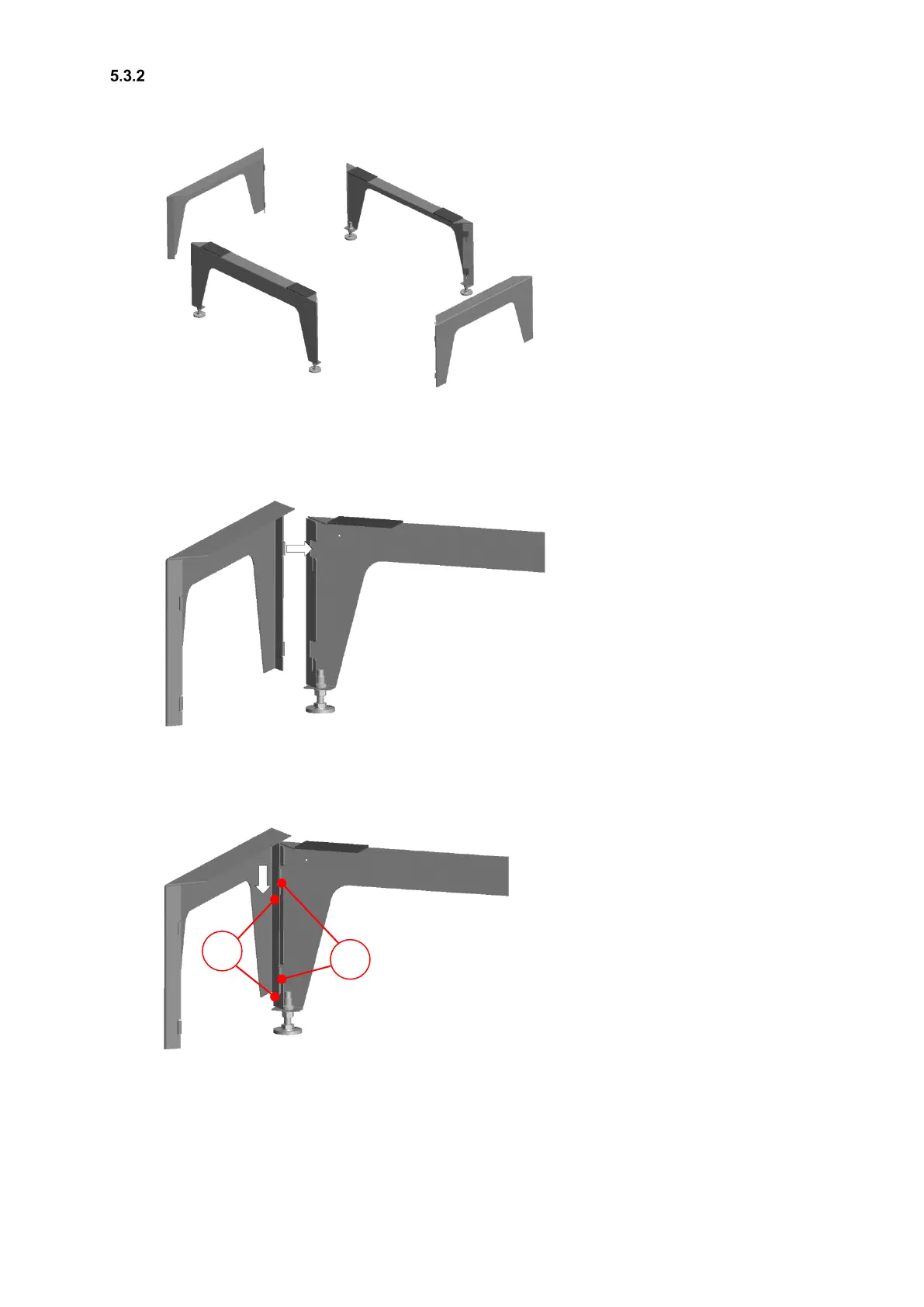 280 mm and 320 mm using adjustable feet. The floor stand consists of two long base parts (each with two adjustable