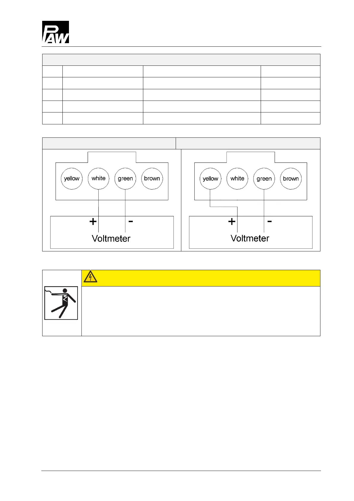 2. Connect the voltmeter with the plug of the flow sensor at the controller (see illustration