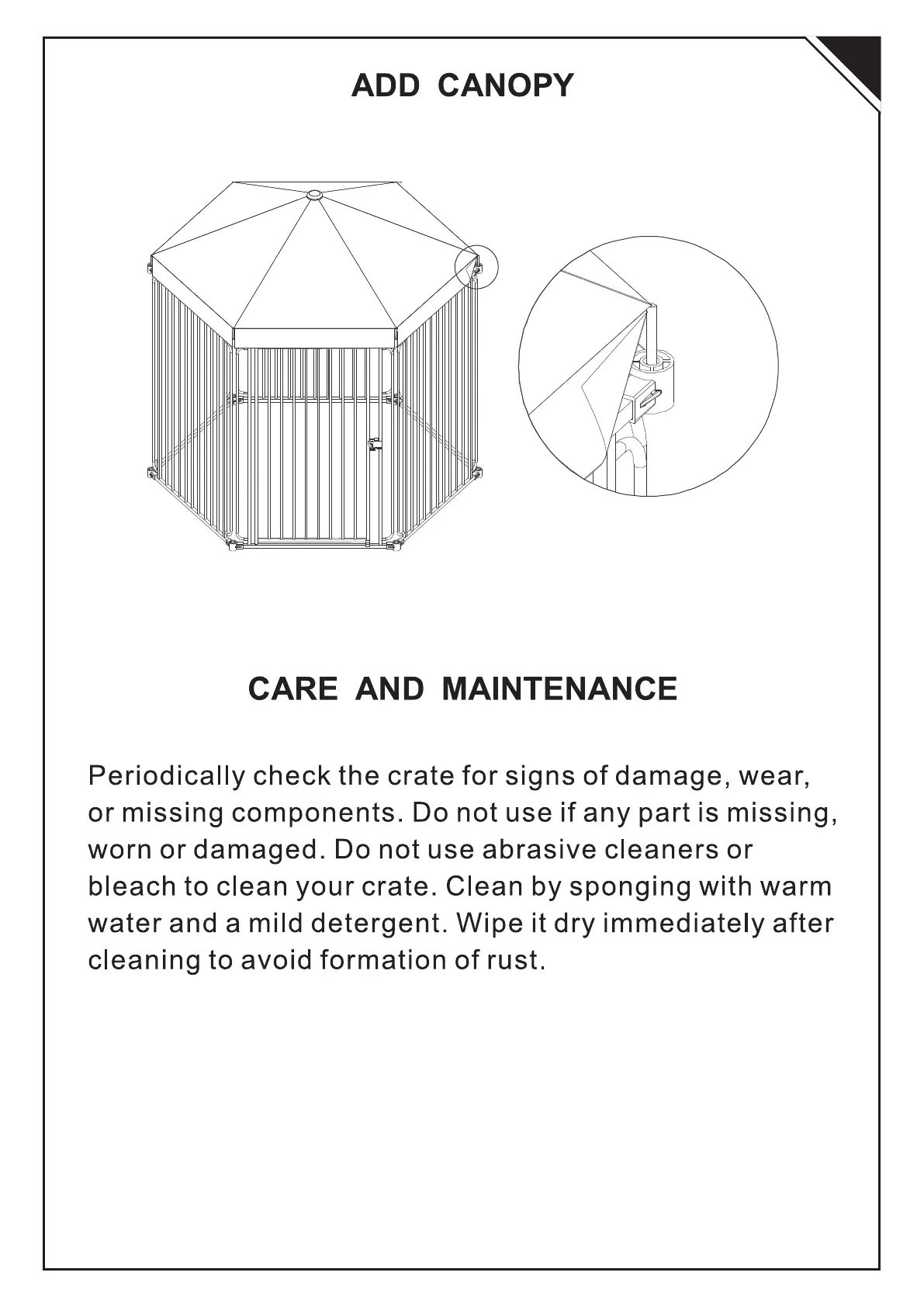 PawHut D02-062 - Accessories and Care; Adding the Canopy; Care and Maintenance Guidelines