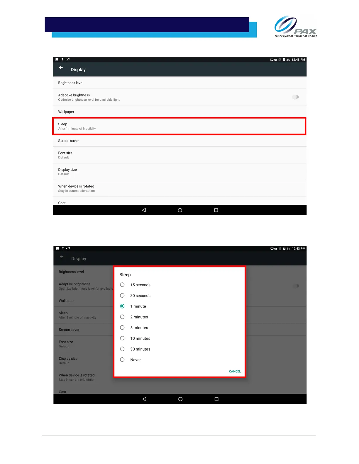 4. Select the preferred screen sleep time.
