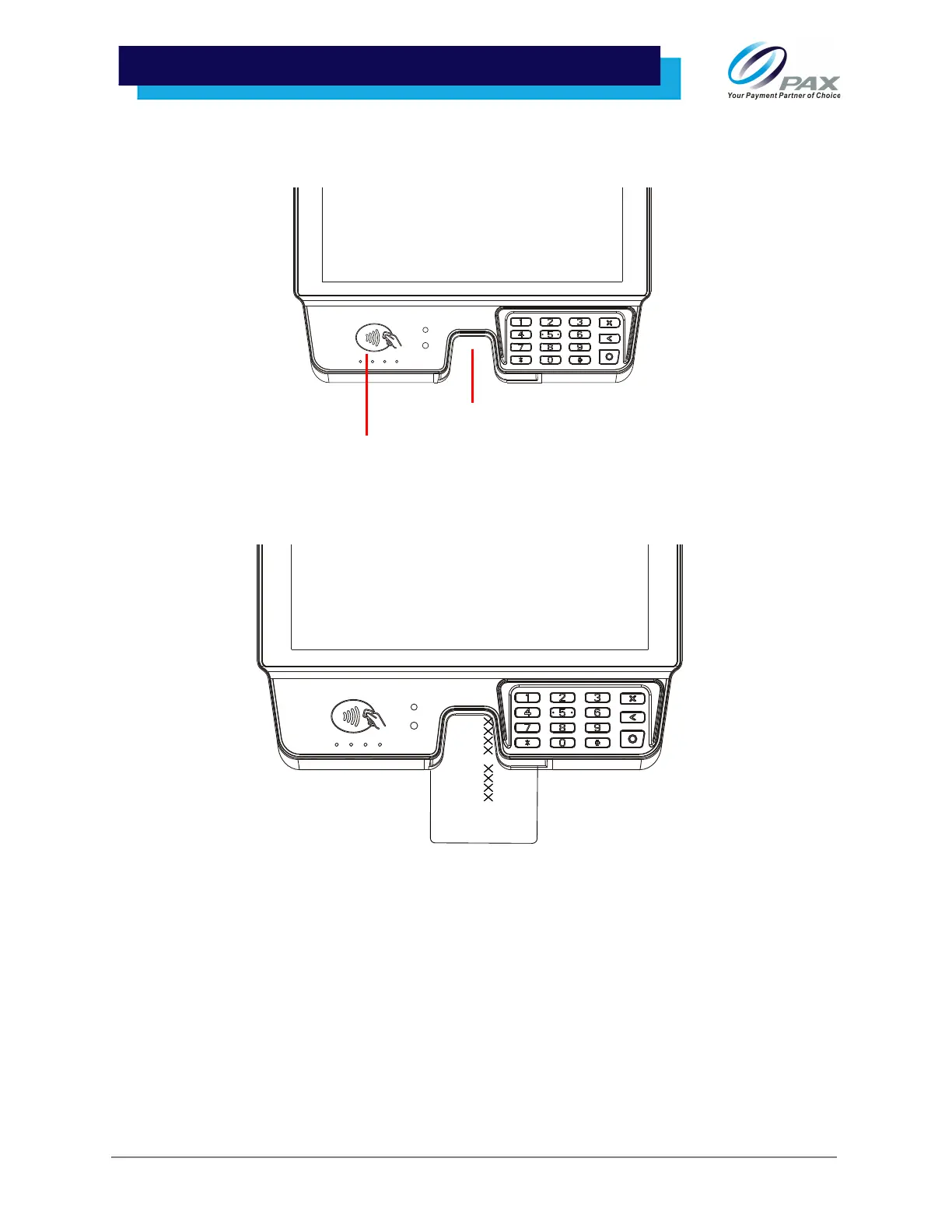 card reader slot located at the front edge of the tablet. The terminal reads the information from the