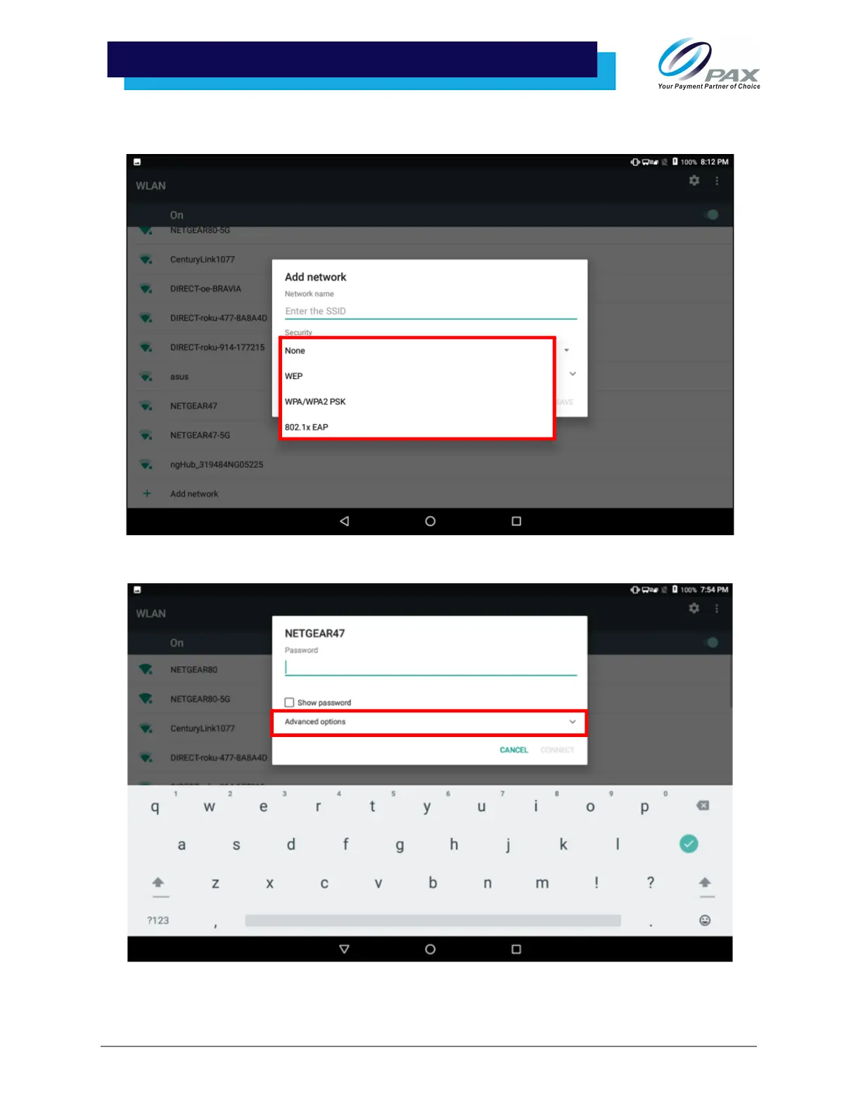 6. Under Security, select the security type from the pull-down menu. Selections include WEP,