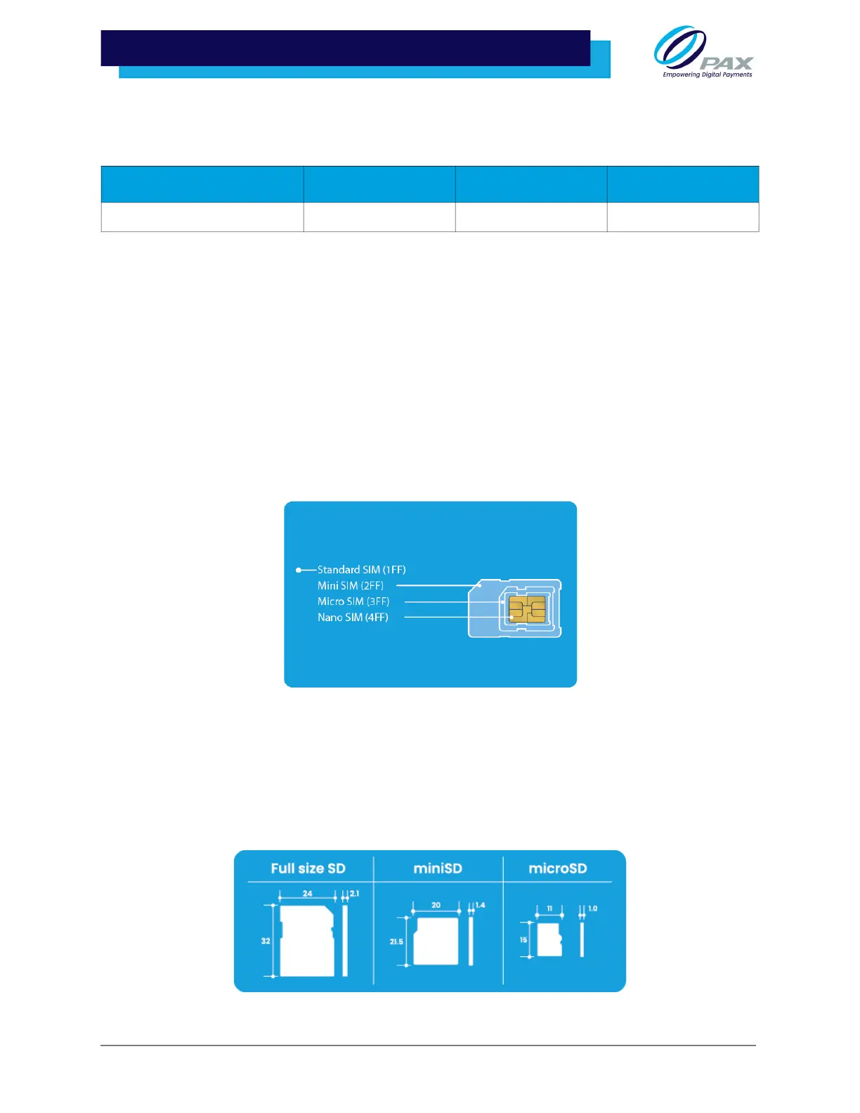 is the Mini SIM size and the maximum SD card size supported in all PAX devices is the Micro SD card.