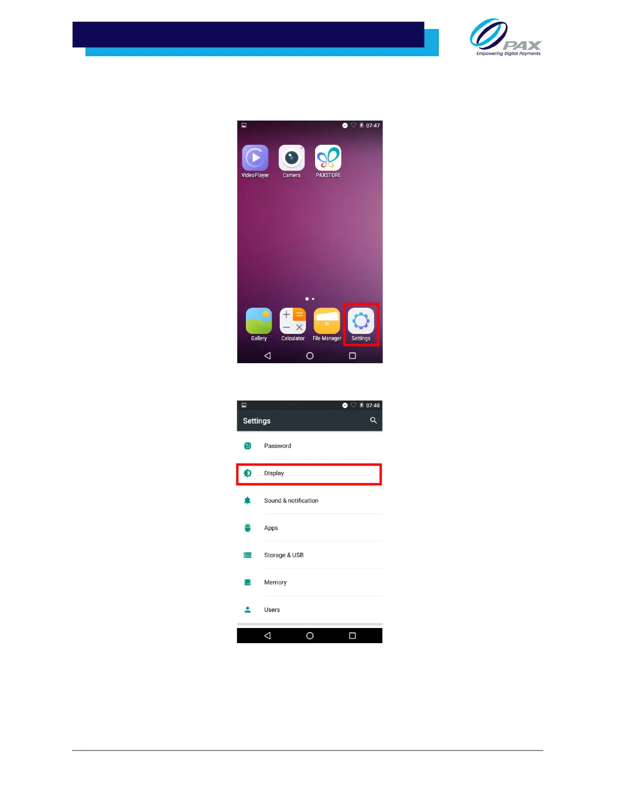 Pax Technology PRIORITY A80 - Adjusting the Display Brightness