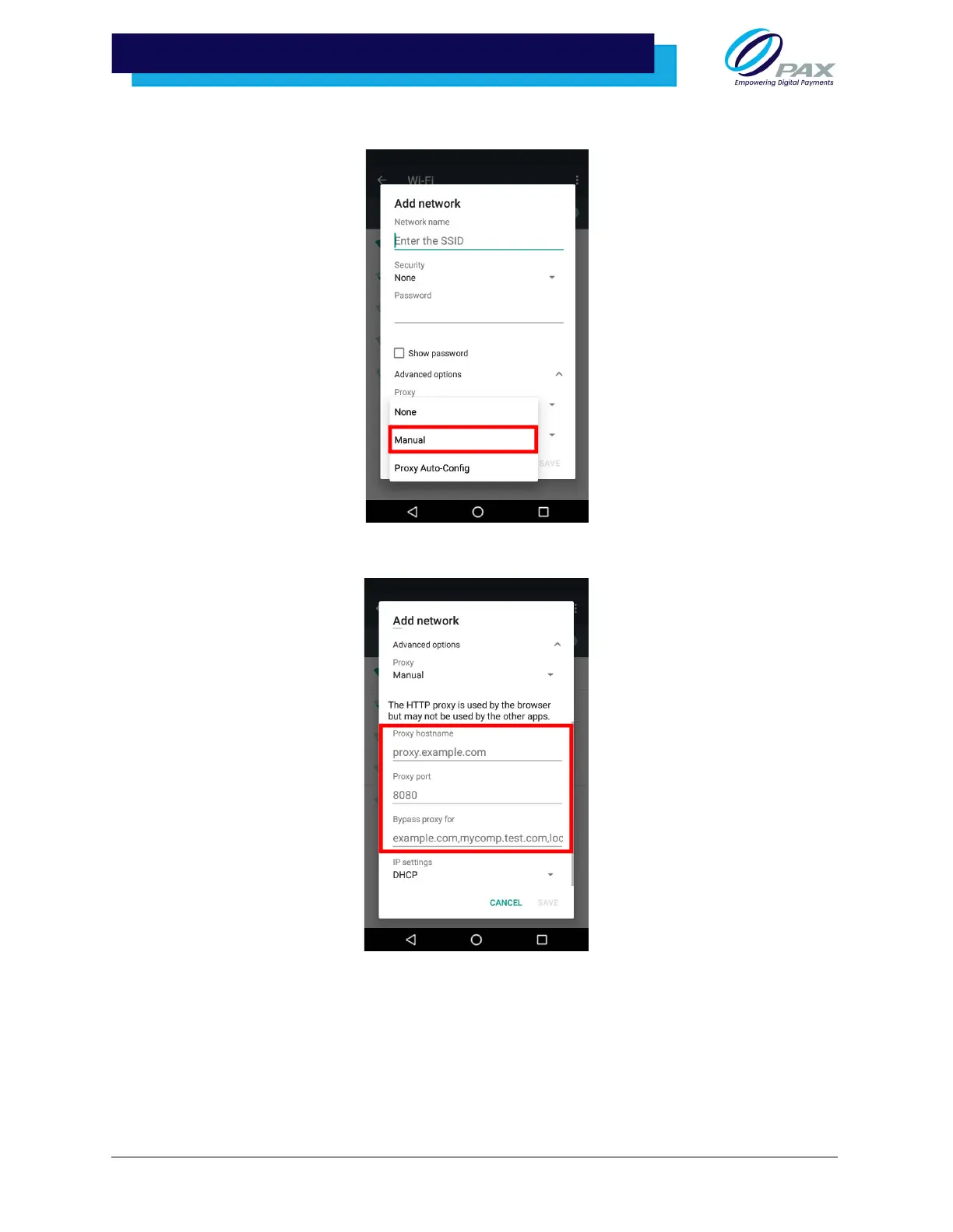 12. Enter [Proxy hostname], [Proxy port], and [Bypass proxy].