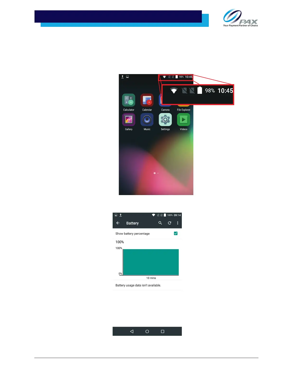 1. In the top right corner of the screen, the A920’s battery icon will show at what
