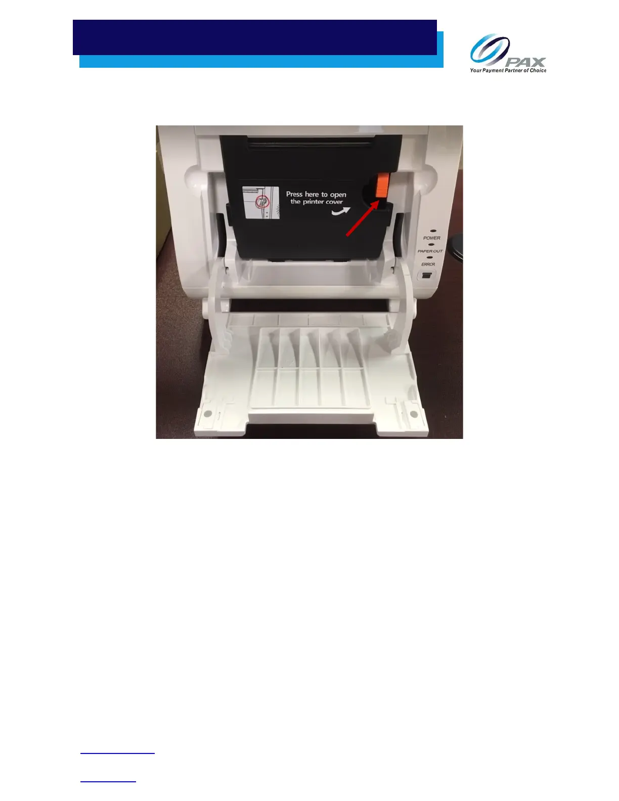 2. Open the built-in printer cover by pressing on the orange spring key. A label affixed to the built-