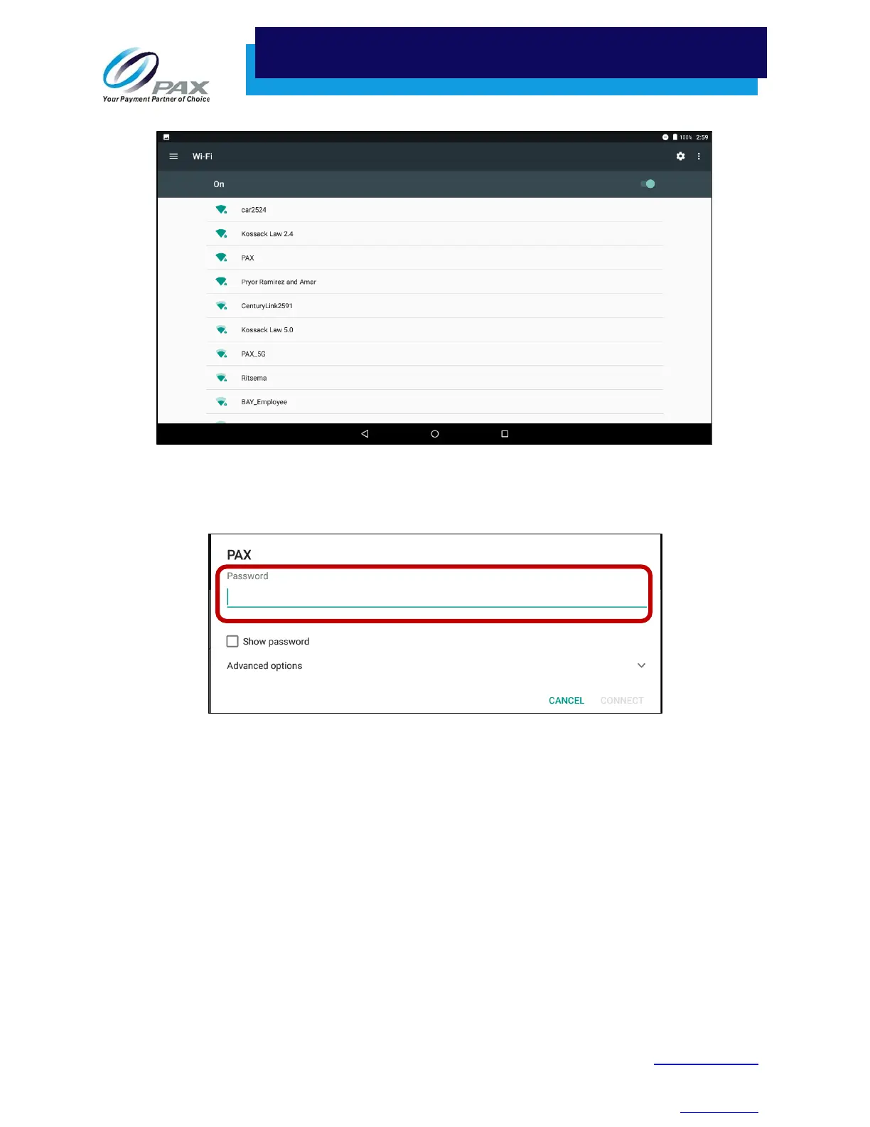 6. Enter the Wi-Fi case-sensitive password.
