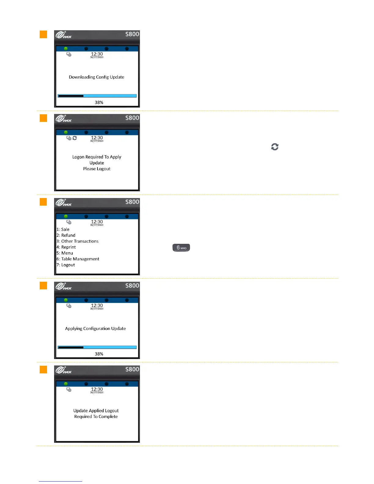 After logging on, axept® S800 will start apply the configuration update.