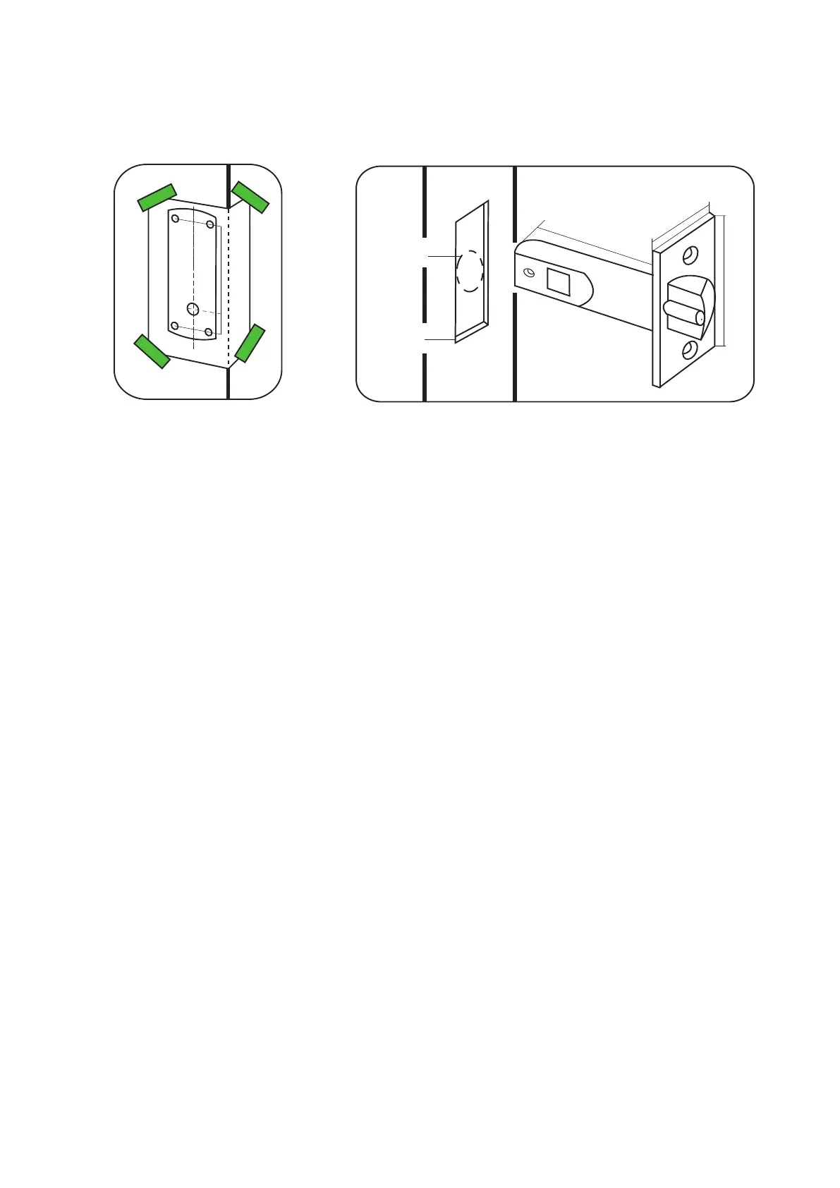 Put the latch into the hole and holding it square to the door edge, draw around the faceplate. Remove the latch and