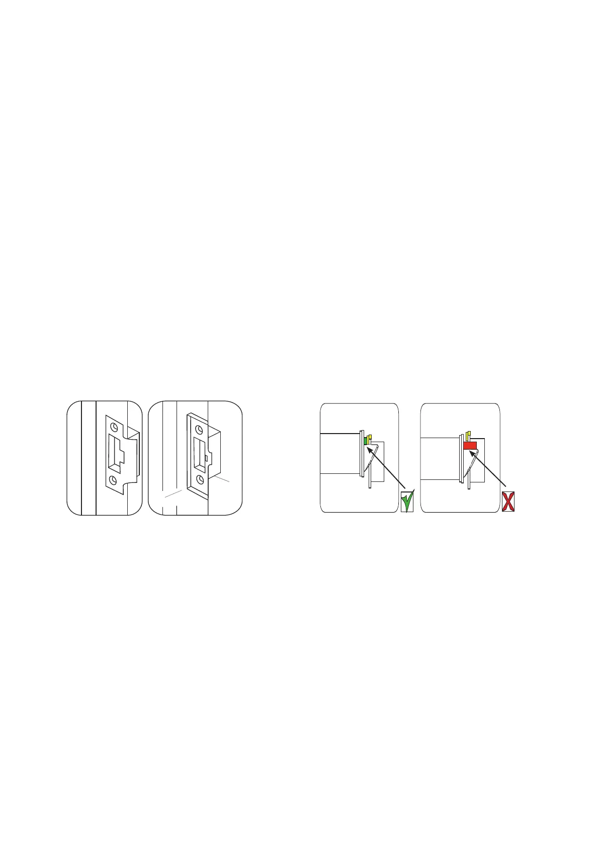 Fix the strike plate using two latch screws and check the operation of the door.