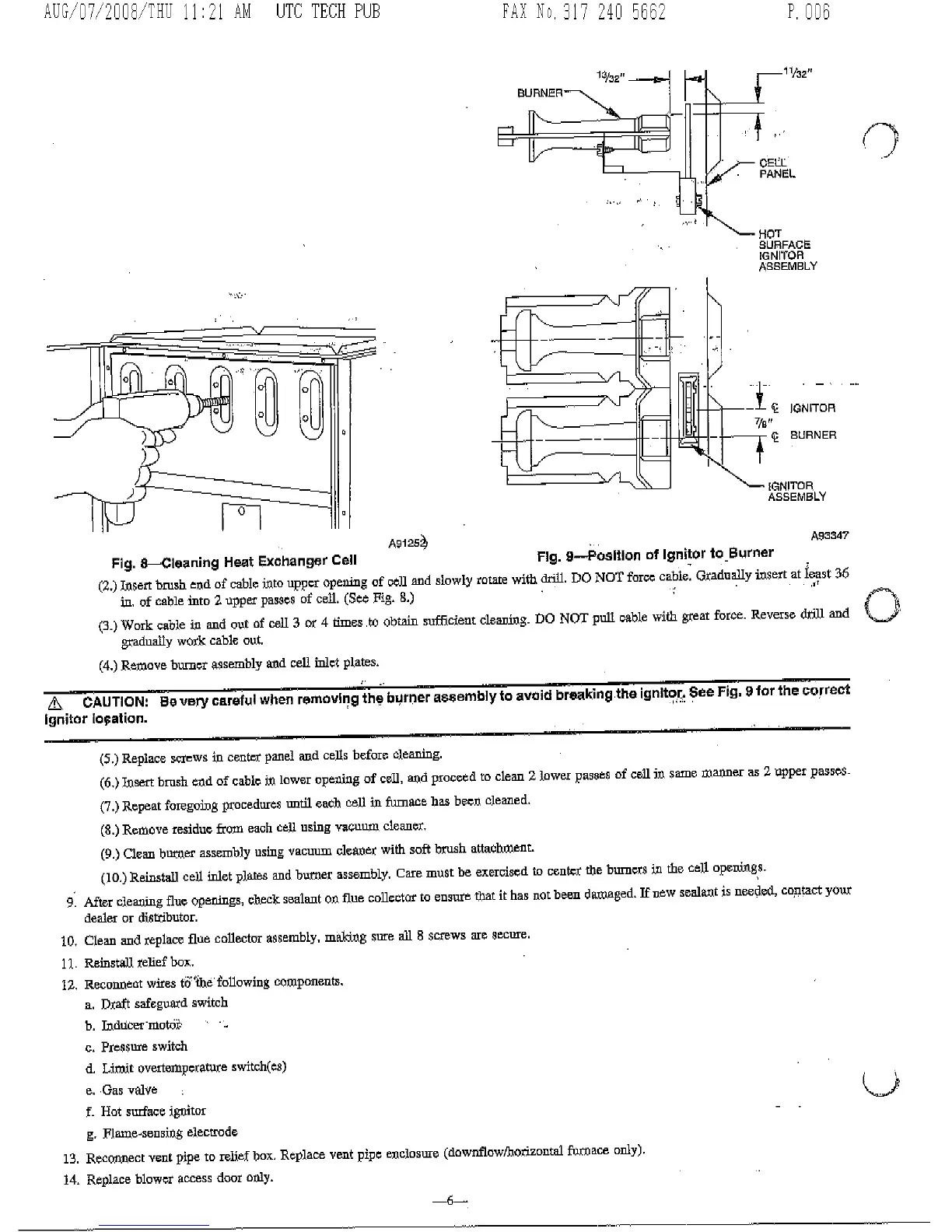 Payne PG8DAA - Cleaning Heat Exchanger Call; Position of Ignitor to Burner