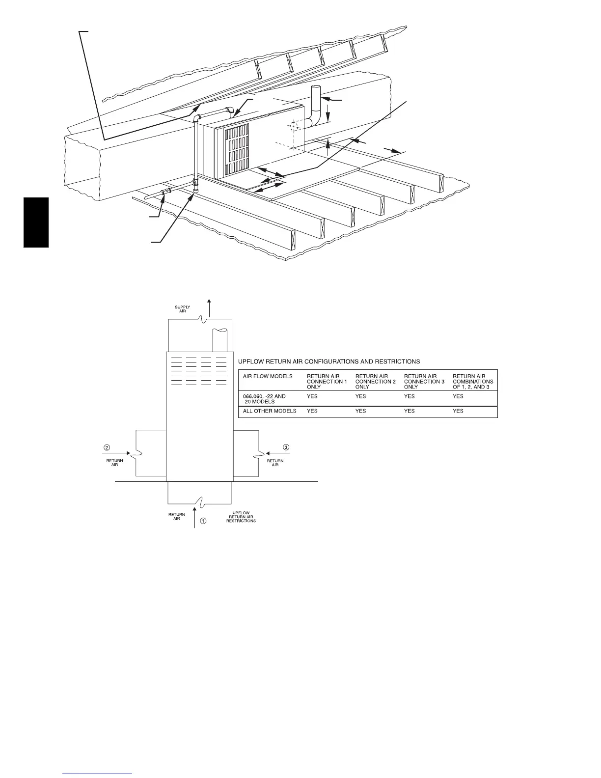 Fig. 18 --- Upflow Return Air configurations and Restrictions