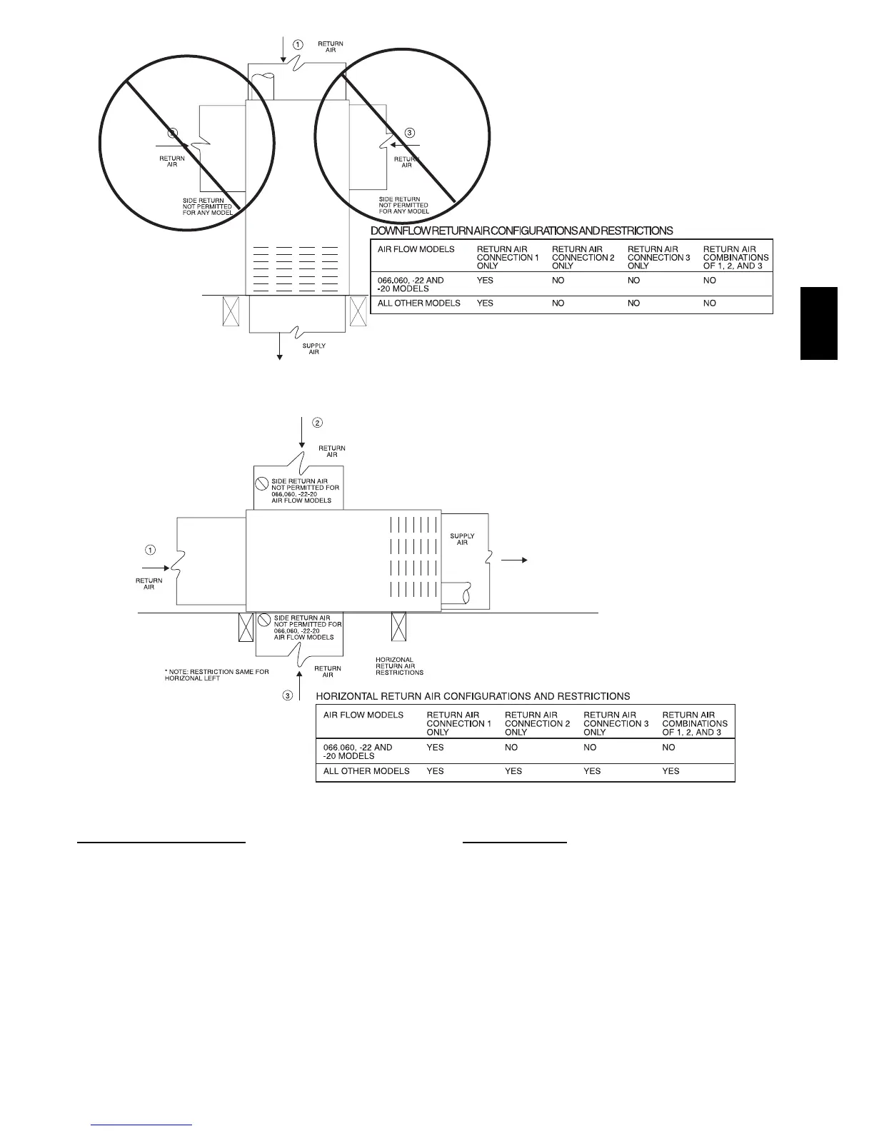 Fig. 19 --- Downflow Return Air Configurations and Restrictions
