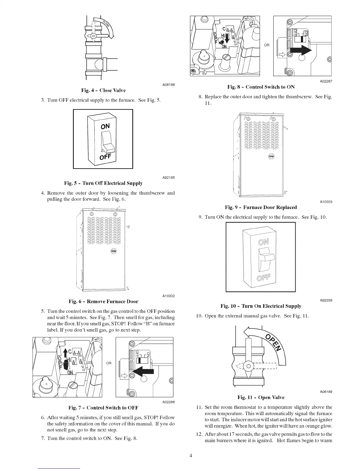 9. Turn ON the electrical supply to the furnace. See Fig. 10.