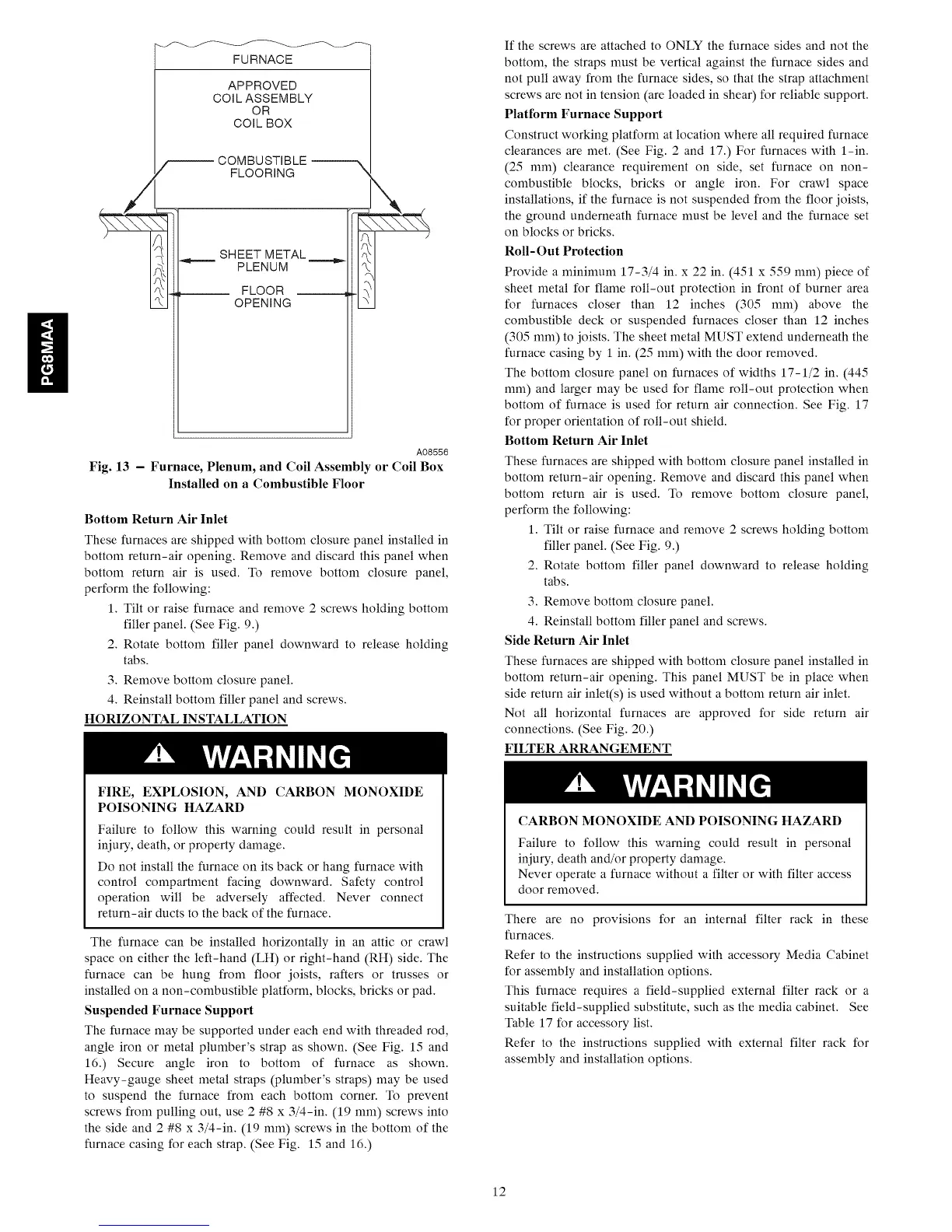 installations, if the furnace is not suspended from the floor joists,