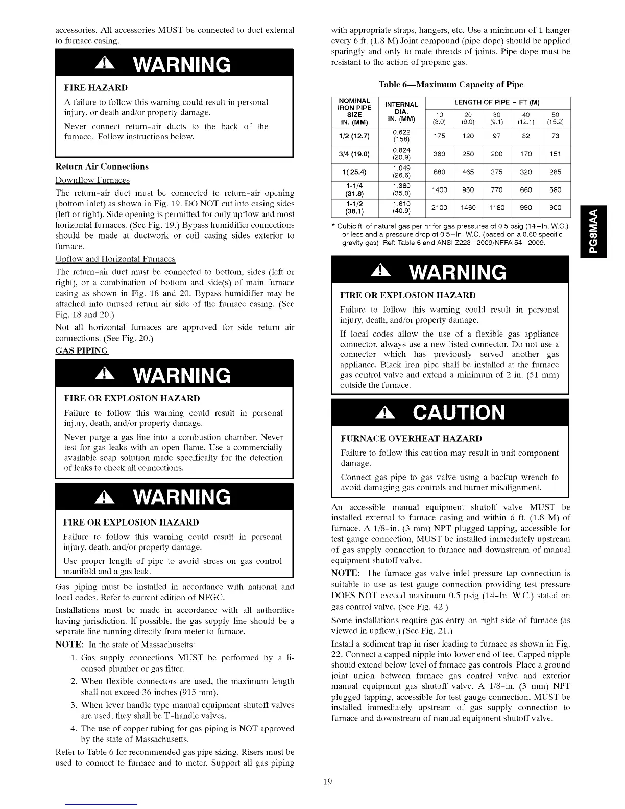 gravity gas). Ref: Table 6 and ANSI Z223-2009/NFPA 54-2009.